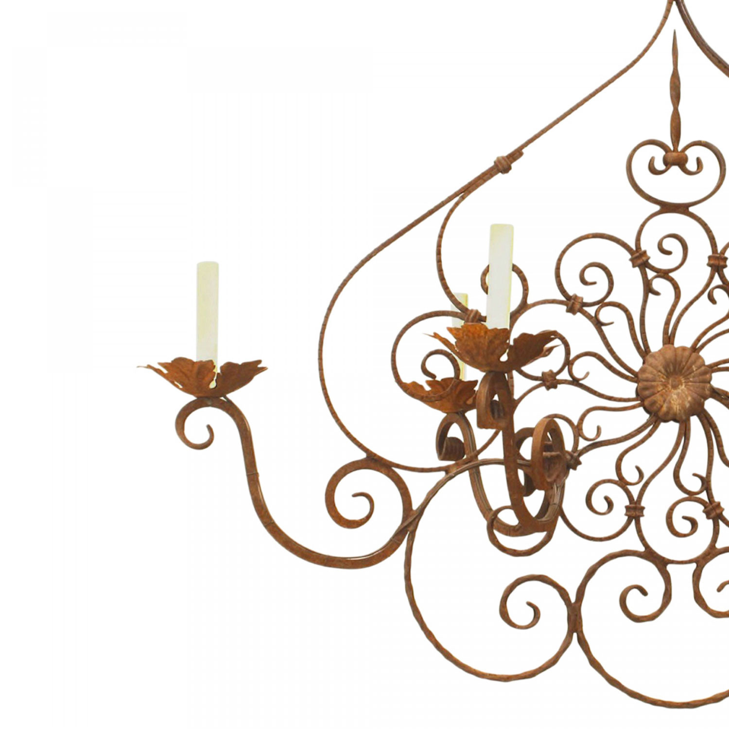 Italian Renaissance Style Wrought Iron Scroll Chandelier