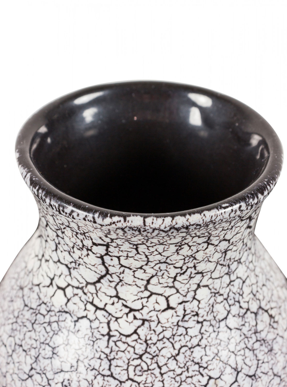 German Mid-Century urn-form ceramic vase with a white and black crackle glaze. (possibly JASBA).