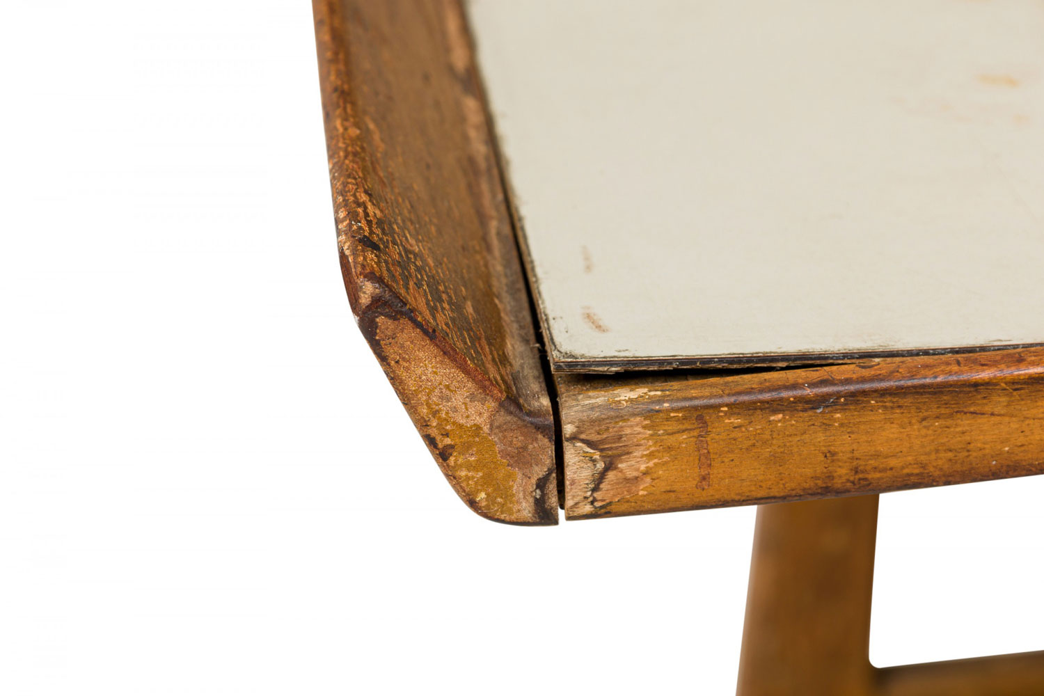 Style: Mid-Century Materials & Techniques: Birch, laminate, wood Category: Tables Condition: Missing casters. Good; Wear consistent with age and use