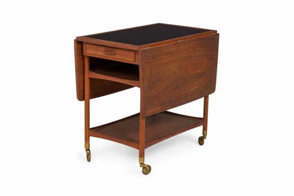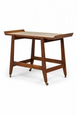 Jens Risom Danish Mid-Century Walnut and Light Gray Laminate Serving Trolley