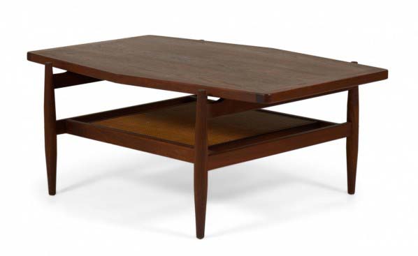 Style: Mid-Century Materials & Techniques: Caning, walnut, wood Category: Tables Good; Wear consistent with age and use