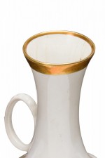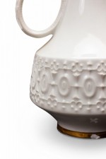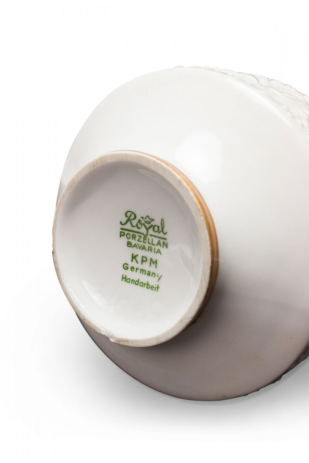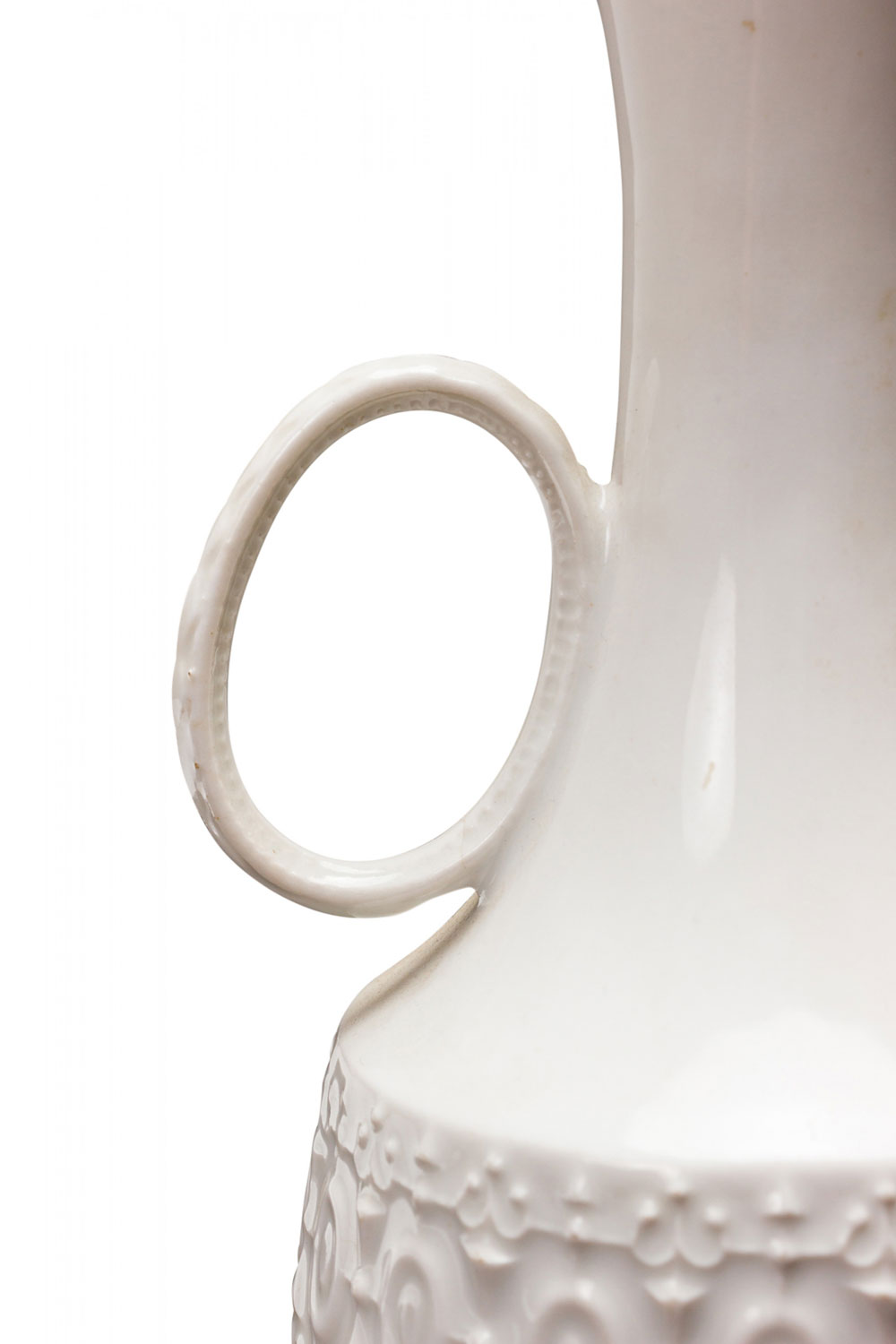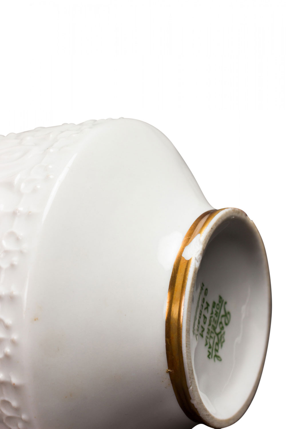 KPM Bavaria German Mid-Century White and Gold and Raised Geometric Pattern Porcelain Handled Vase