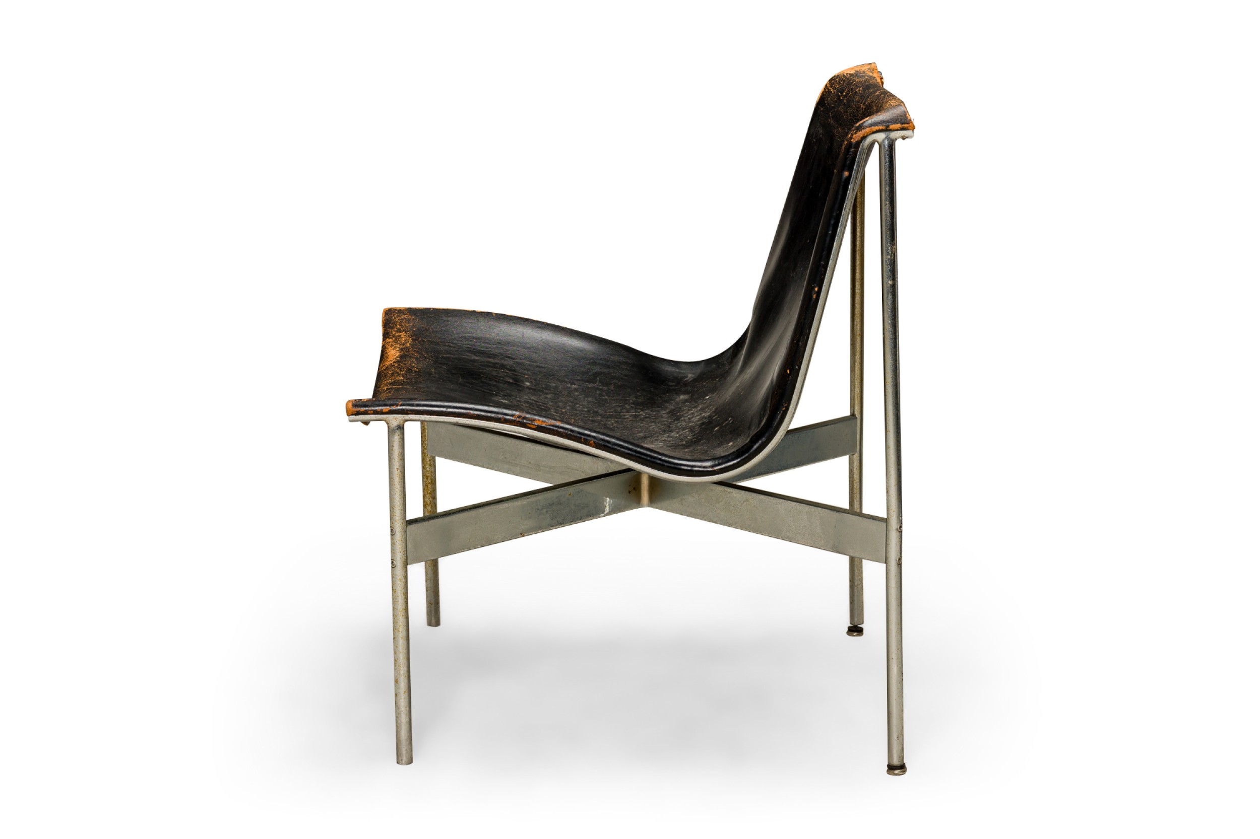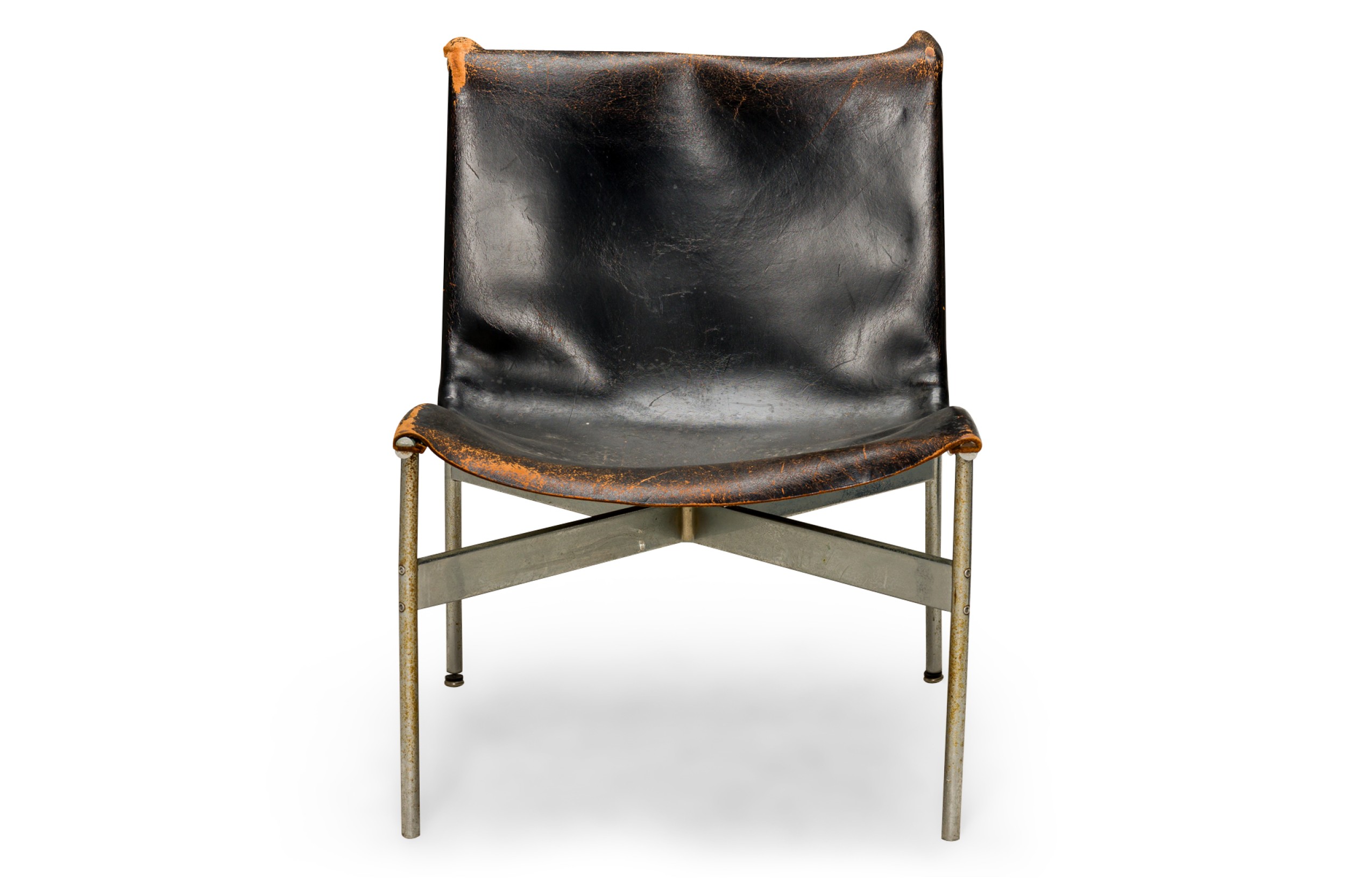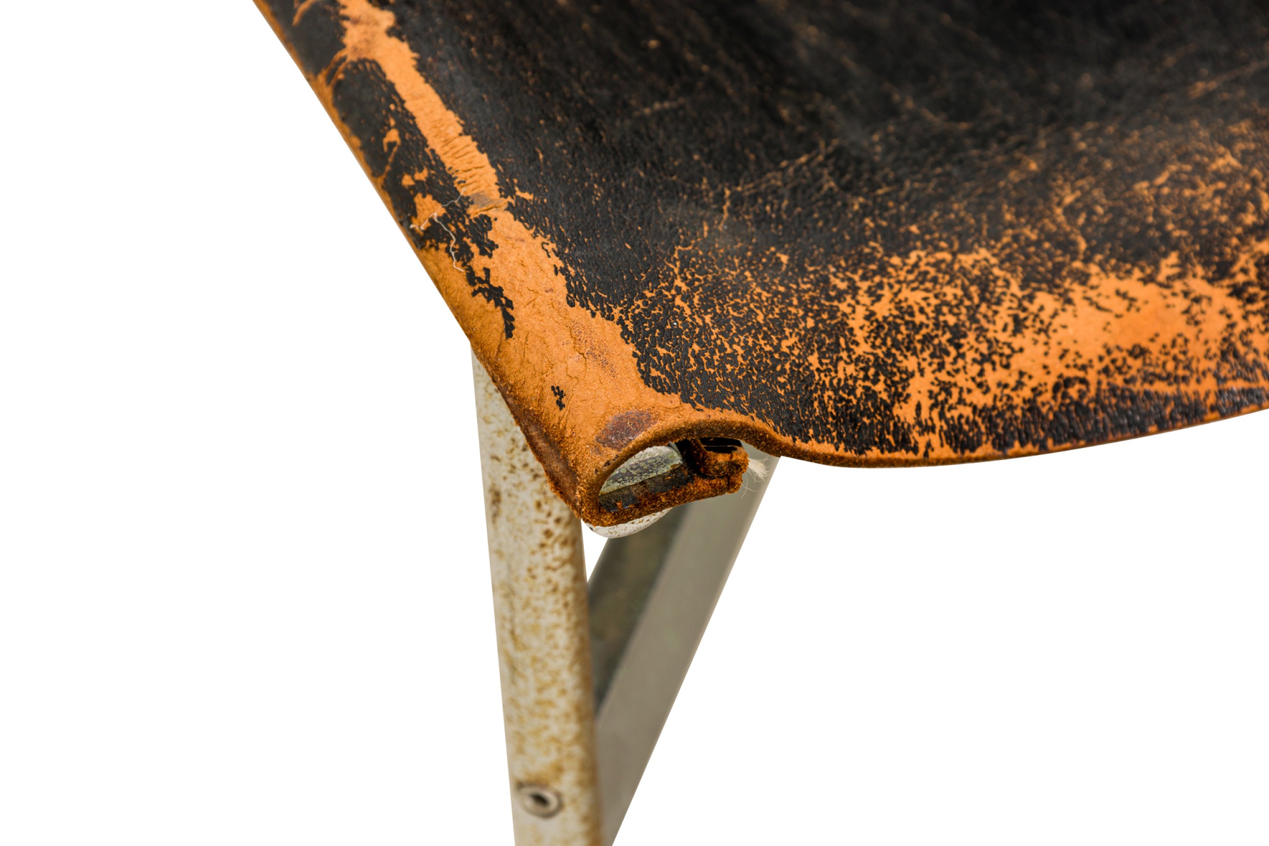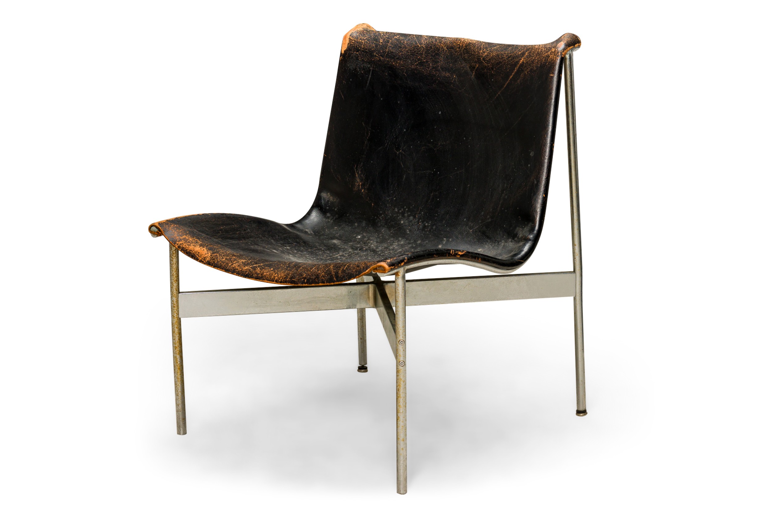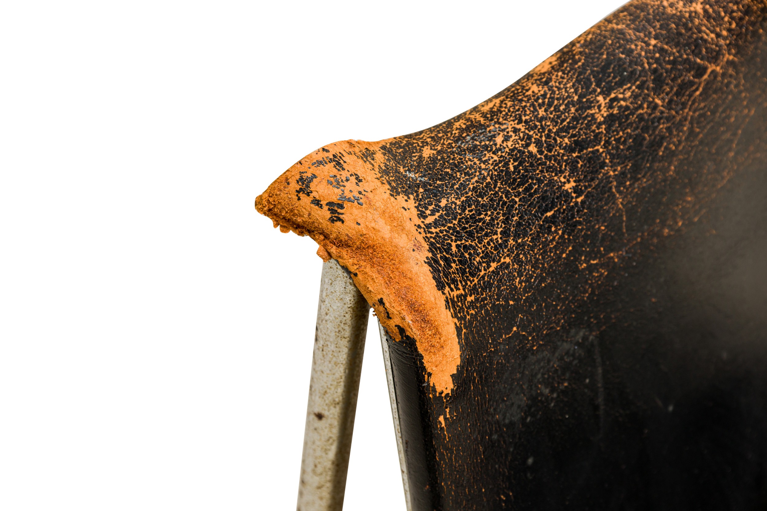 Style: Mid-Century Materials & Techniques: Chrome, leather, metal Category: Seating Condition: Notable damage to leather. Fair; Minor structural damages