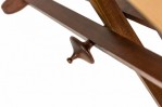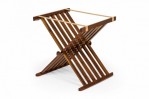 American Mid-Century wooden end / side tables with removable tray tops with two low sides with bracket-shaped cutout handles and folding X-form bases comprised of wooden slats. (KIPP STEWART FOR DREXEL FURNITURE COMPANY).