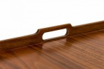 Style: Mid-Century Materials & Techniques: Veneer, walnut, wood Category: Tables Good; Wear consistent with age and use