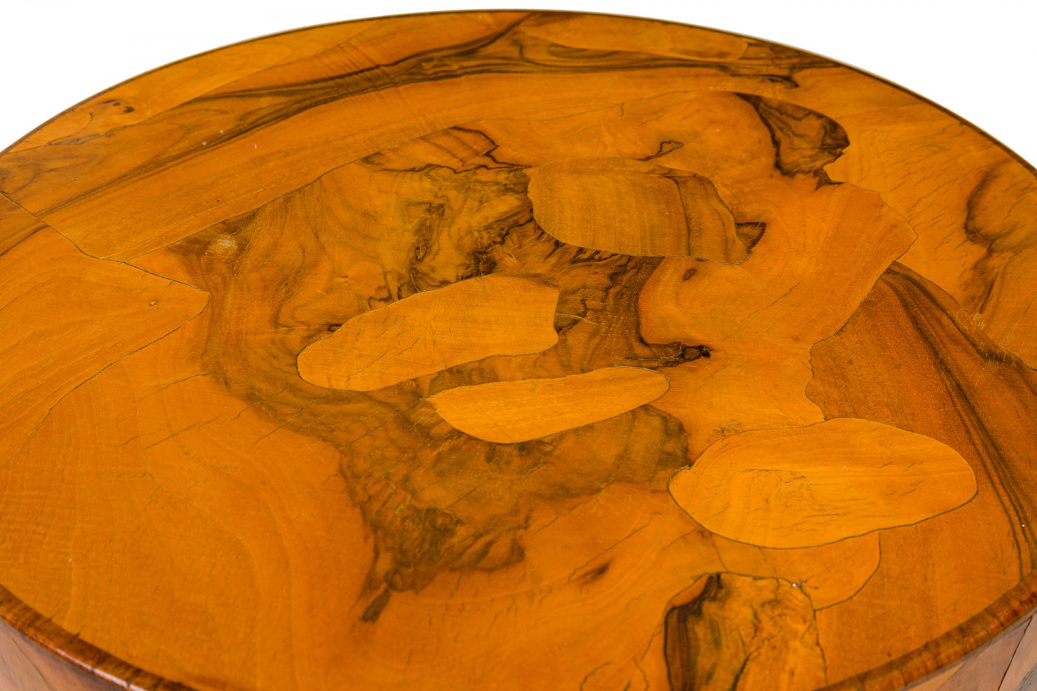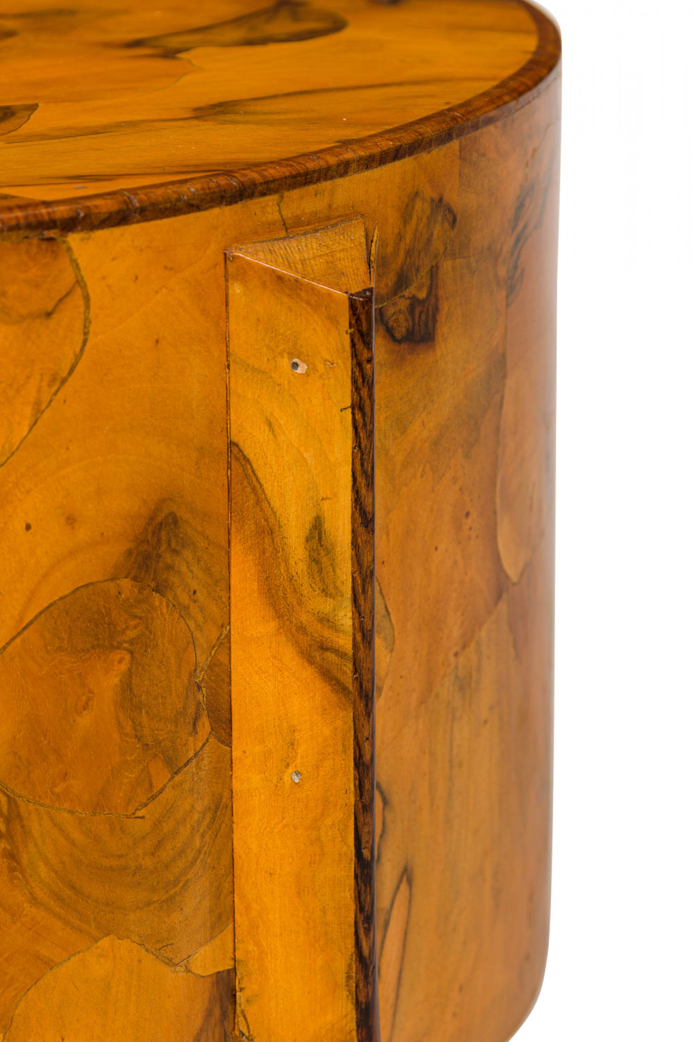 Mid-Century Italian Drum Form Oyster Burl End / Side Table