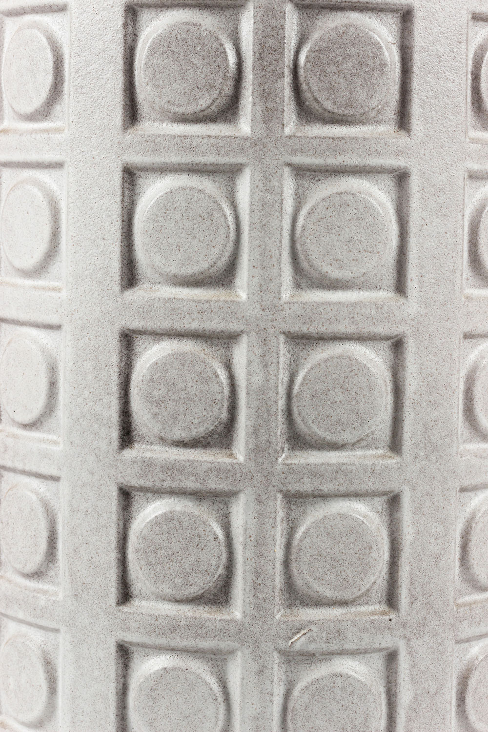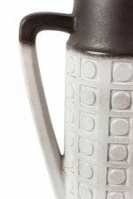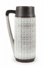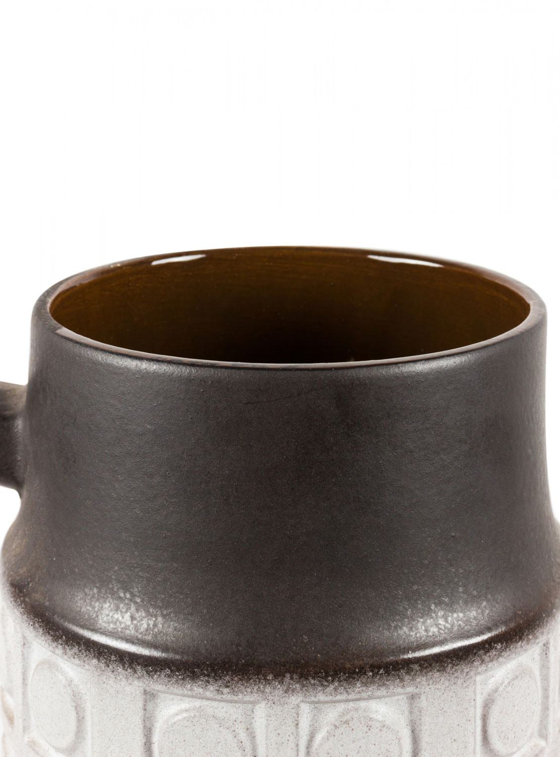 Mid-Century West German Circle and Square Patterned White and Brown Glazed Ceramic Handled Vase
