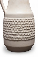 Mid-Century West German White Dimpled Band Design Ceramic Handled Vase