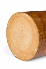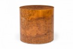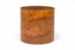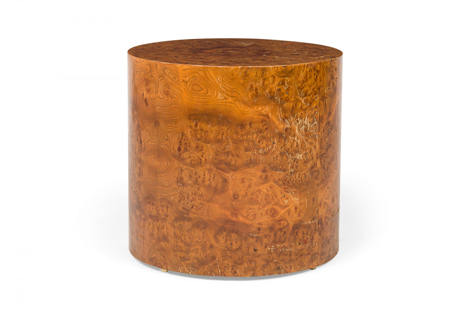 American Mid-Century drum form end / side table with an ash burl wood veneer. (MILO BAUGHMAN FOR DIRECTIONAL FURNITURE COMPANY)