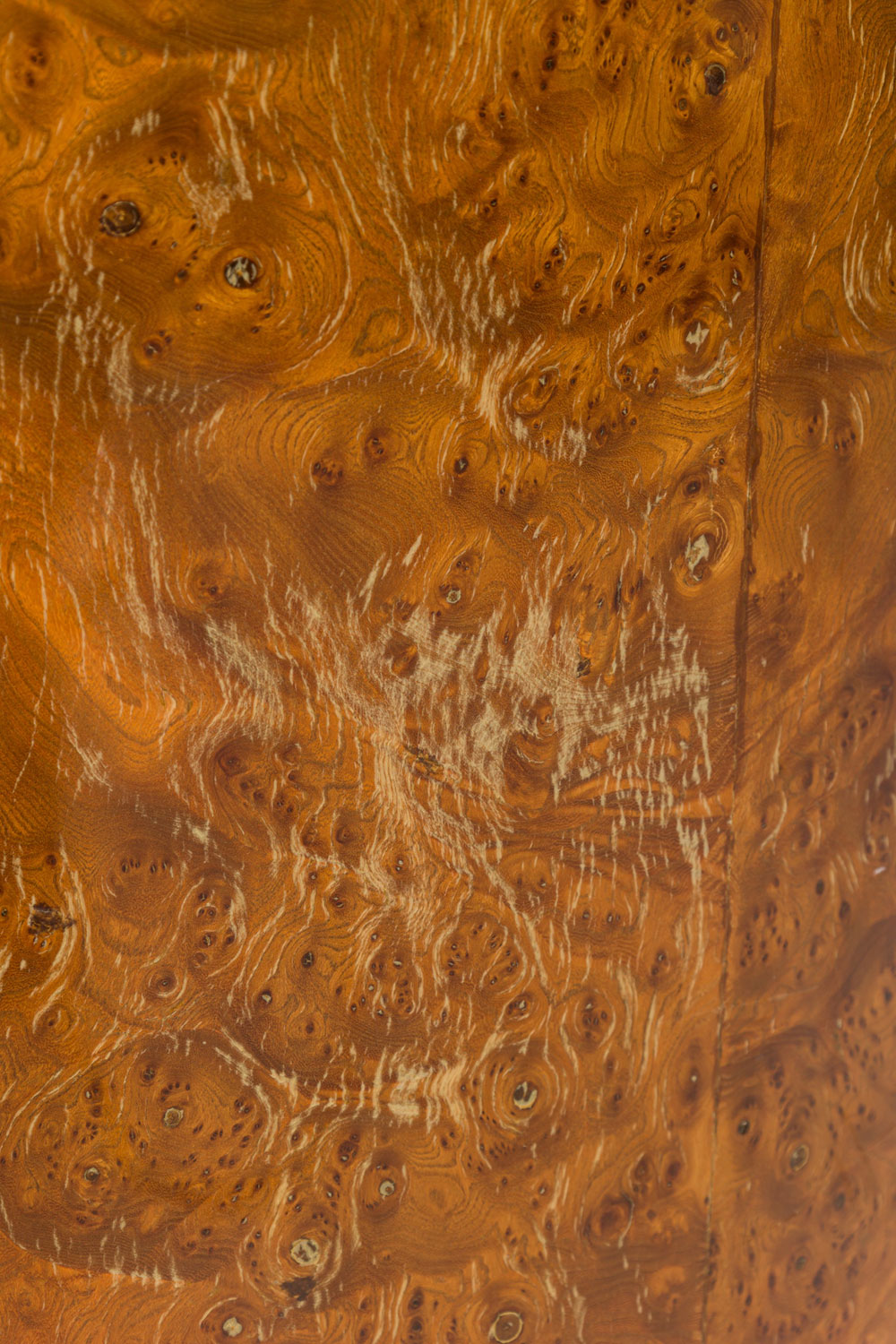 Milo Baughman for Directional American Mid-Century Ash Burl Drum Form End / Side Table