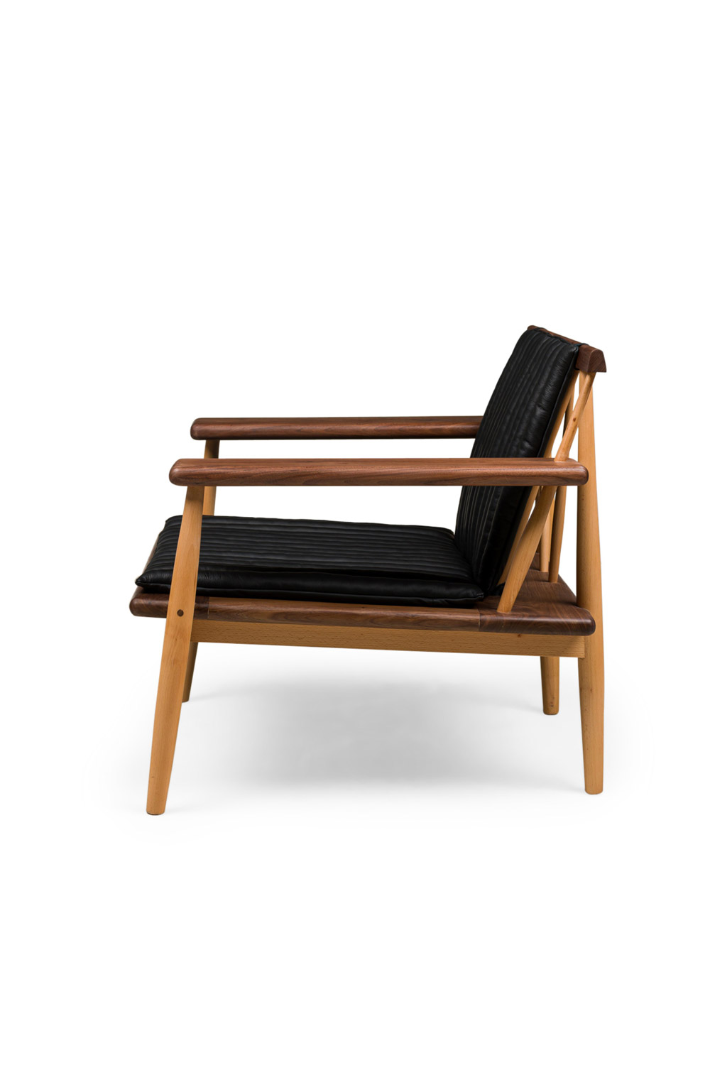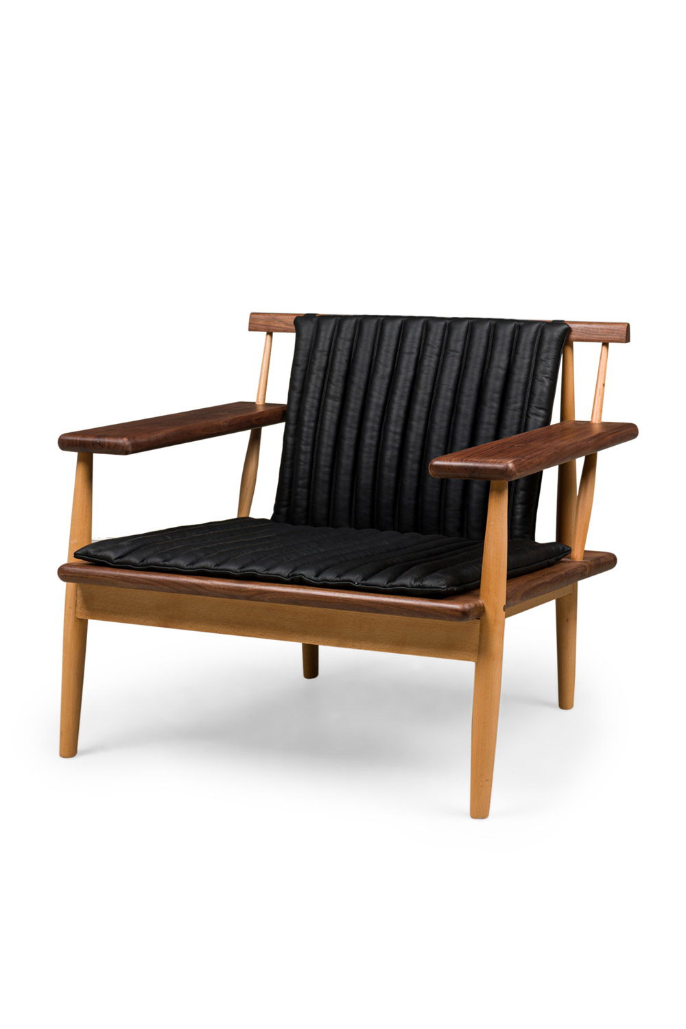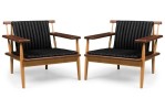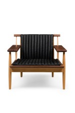 2 "Escandi" Contemporary Scandinavian / Mid-Century inspired armchairs constructed of sustainably harvested FSC-Certified walnut with stylishly tufted leather upholstered seat and back cushions (PRICED EACH)..