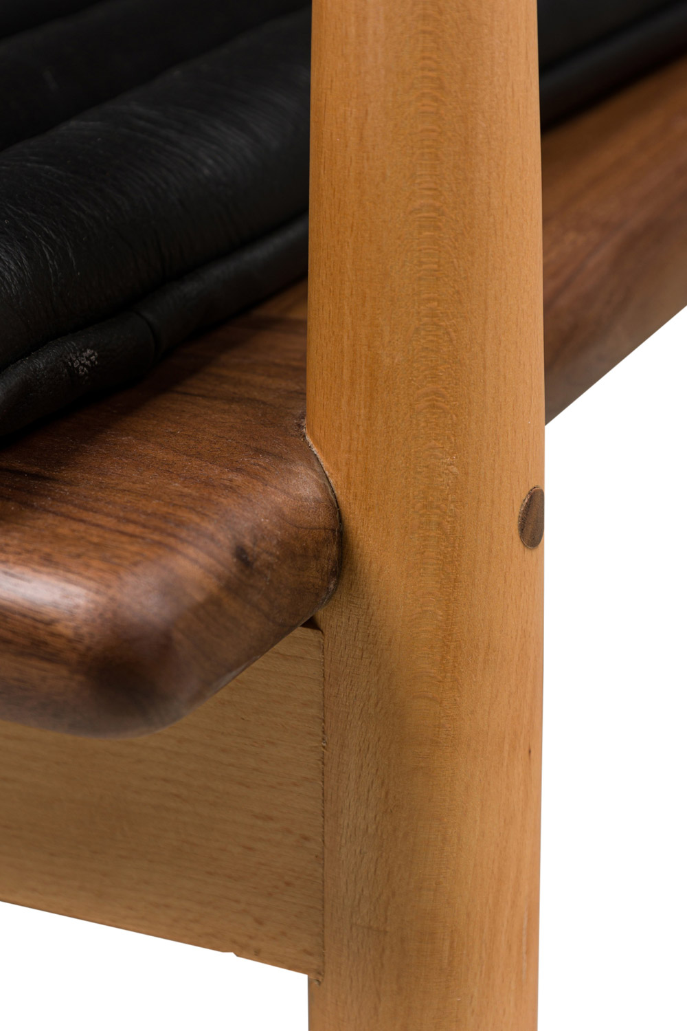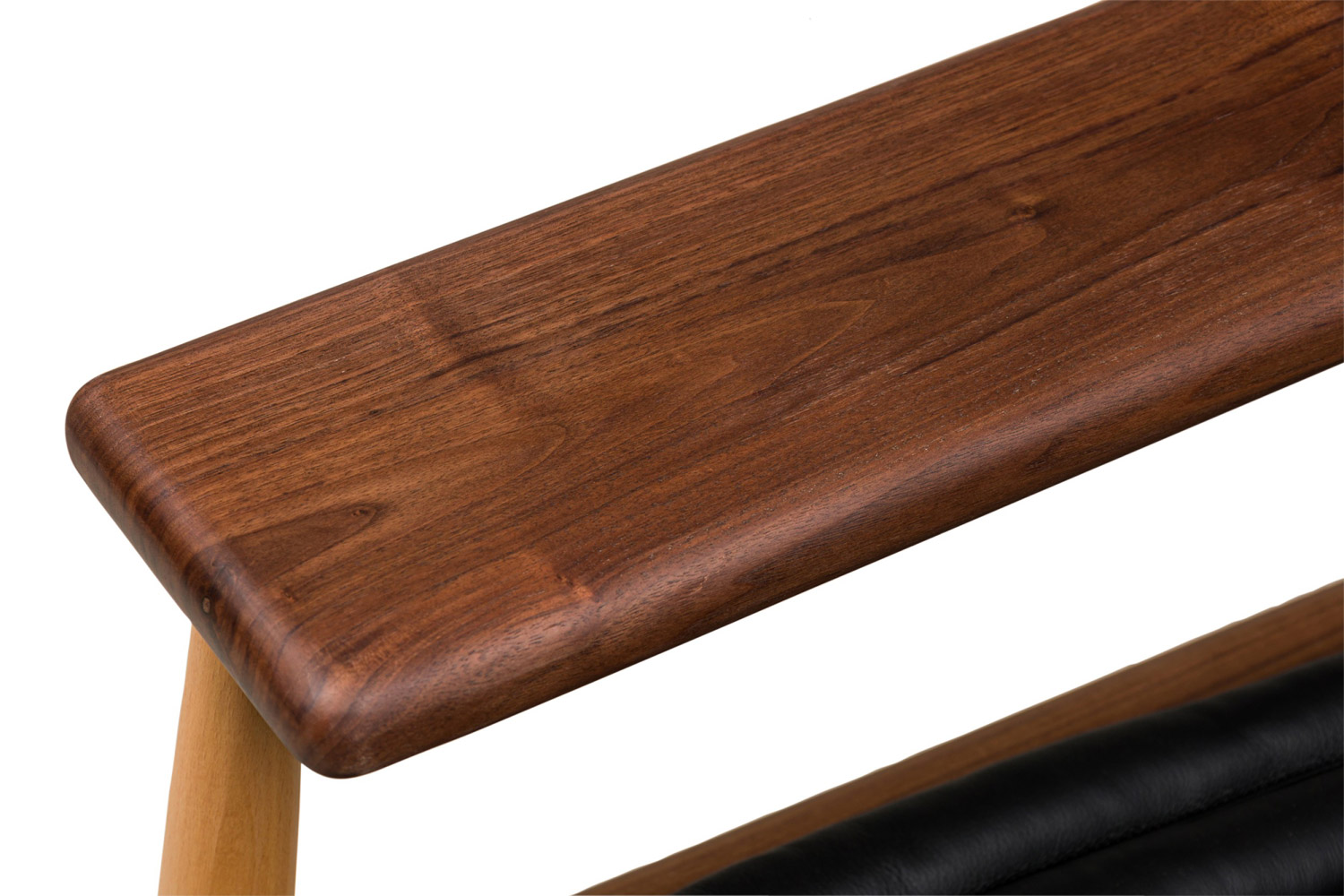 Style: Mid-Century Materials & Techniques: Leather, walnut, wood Category: Seating Good; Wear consistent with age and use