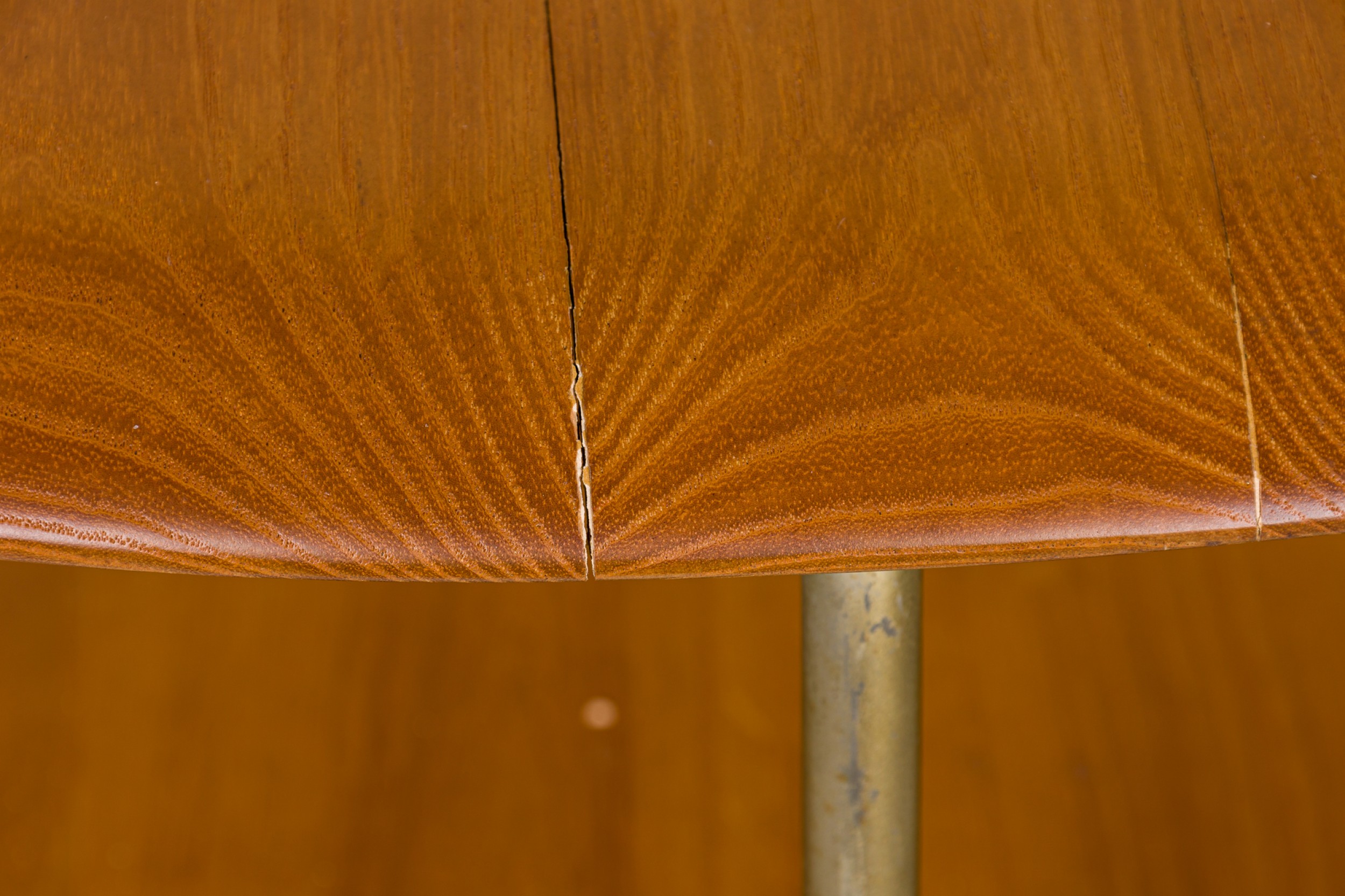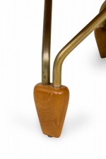 Style: Mid-Century Materials & Techniques: Brass, metal, walnut, wood Category: Tables Good; Wear consistent with age and use