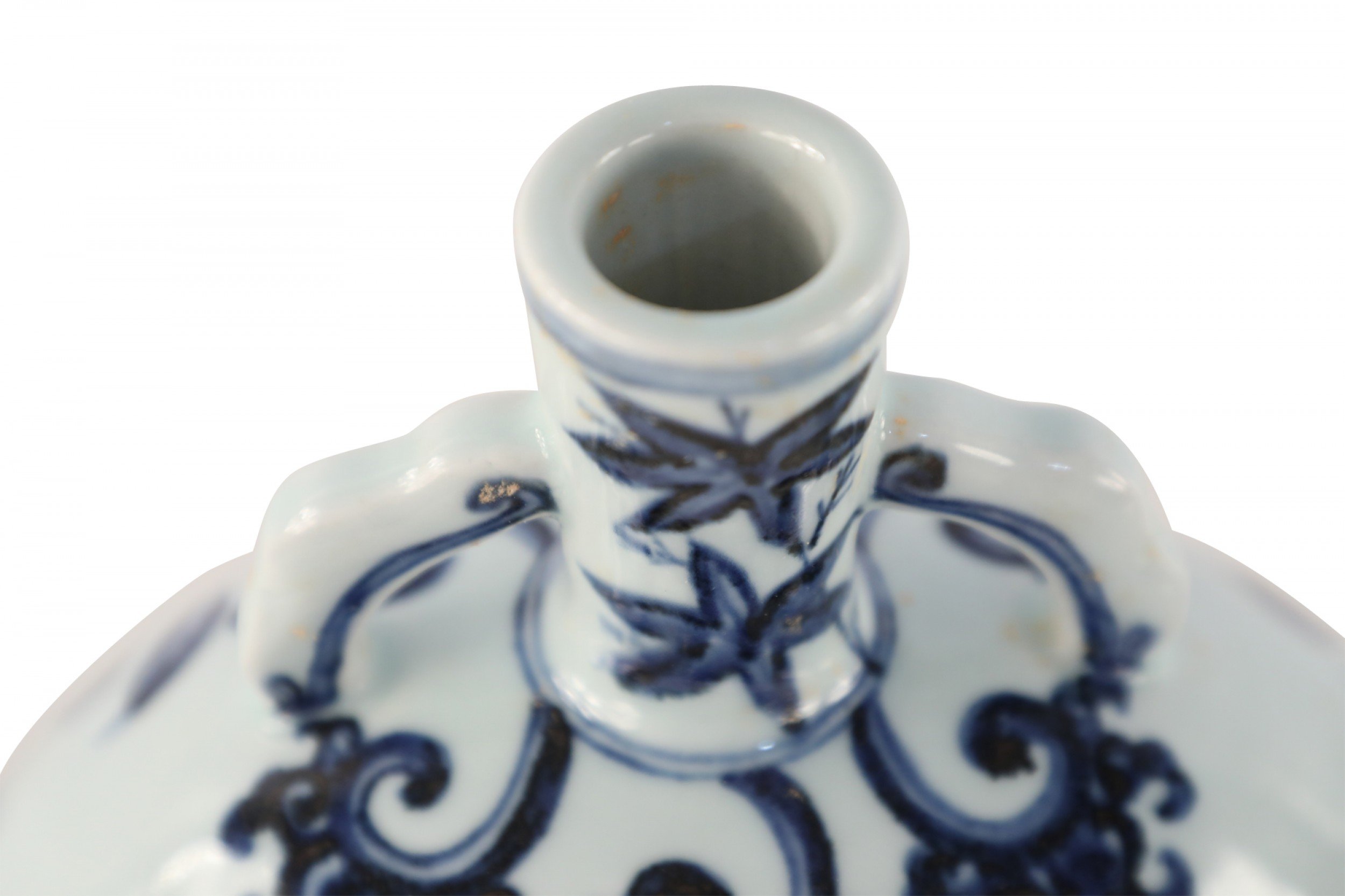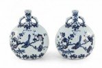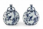Pair of Chinese Ming Dynasty Style Blue and White Porcelain Moonflask Vases