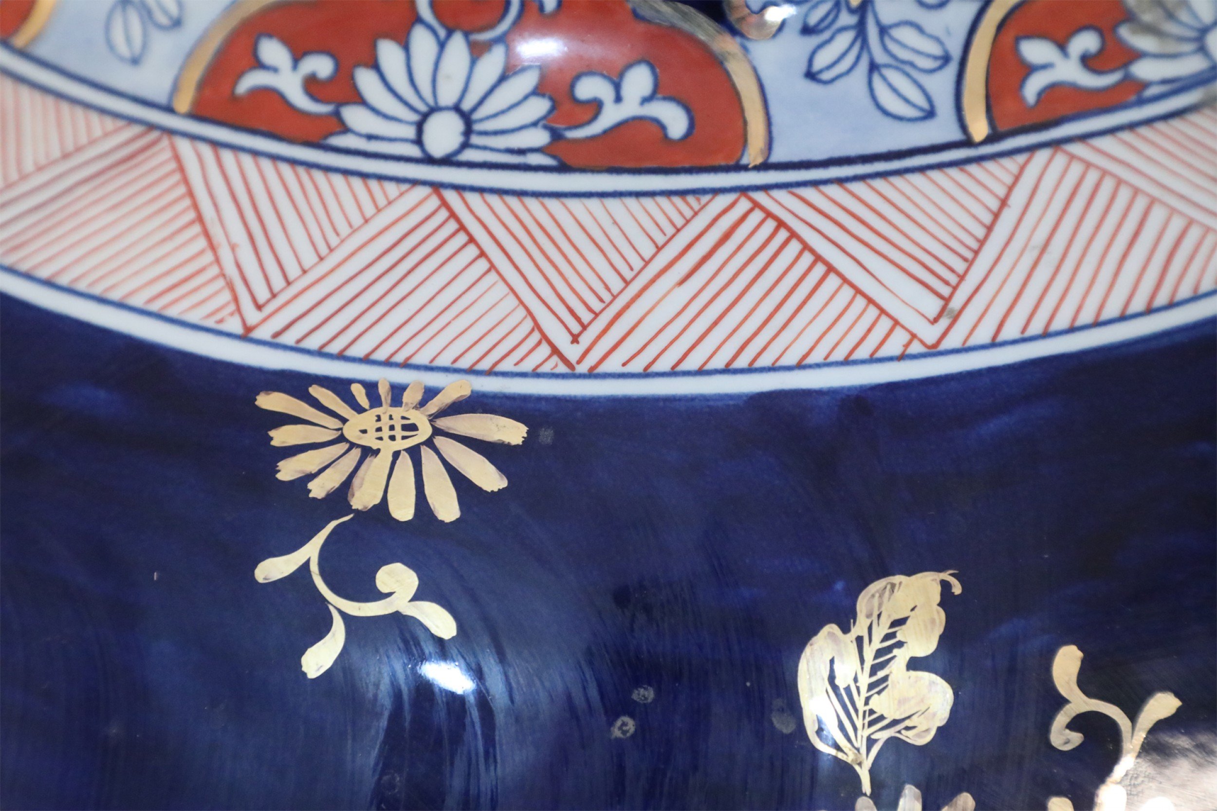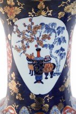 Pair of Chinese Monumental Imari-Style Blue Porcelain Urns