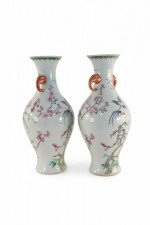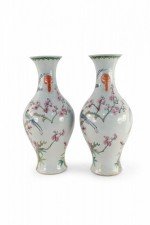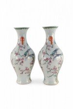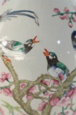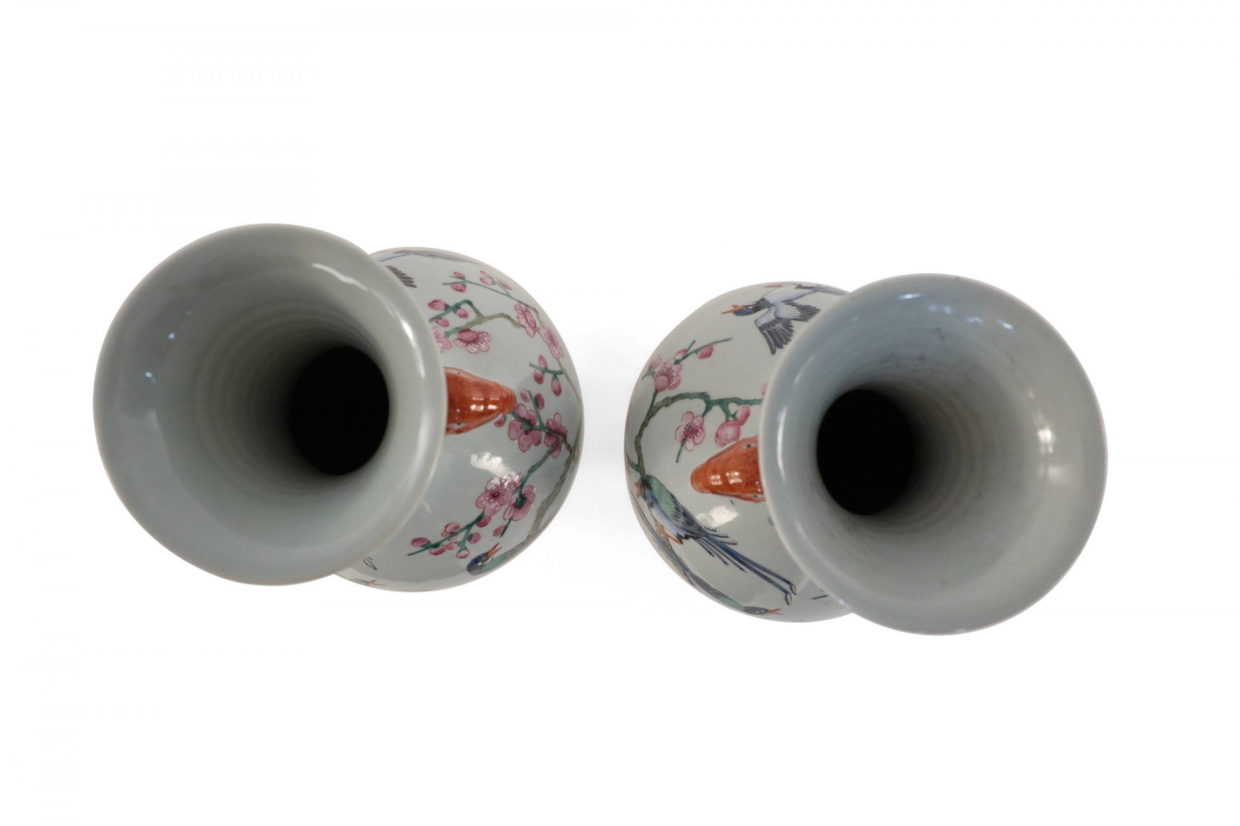 Pair of Chinese Off-White Cherry Blossom Tree and Bird Motif Porcelain Vases