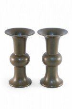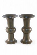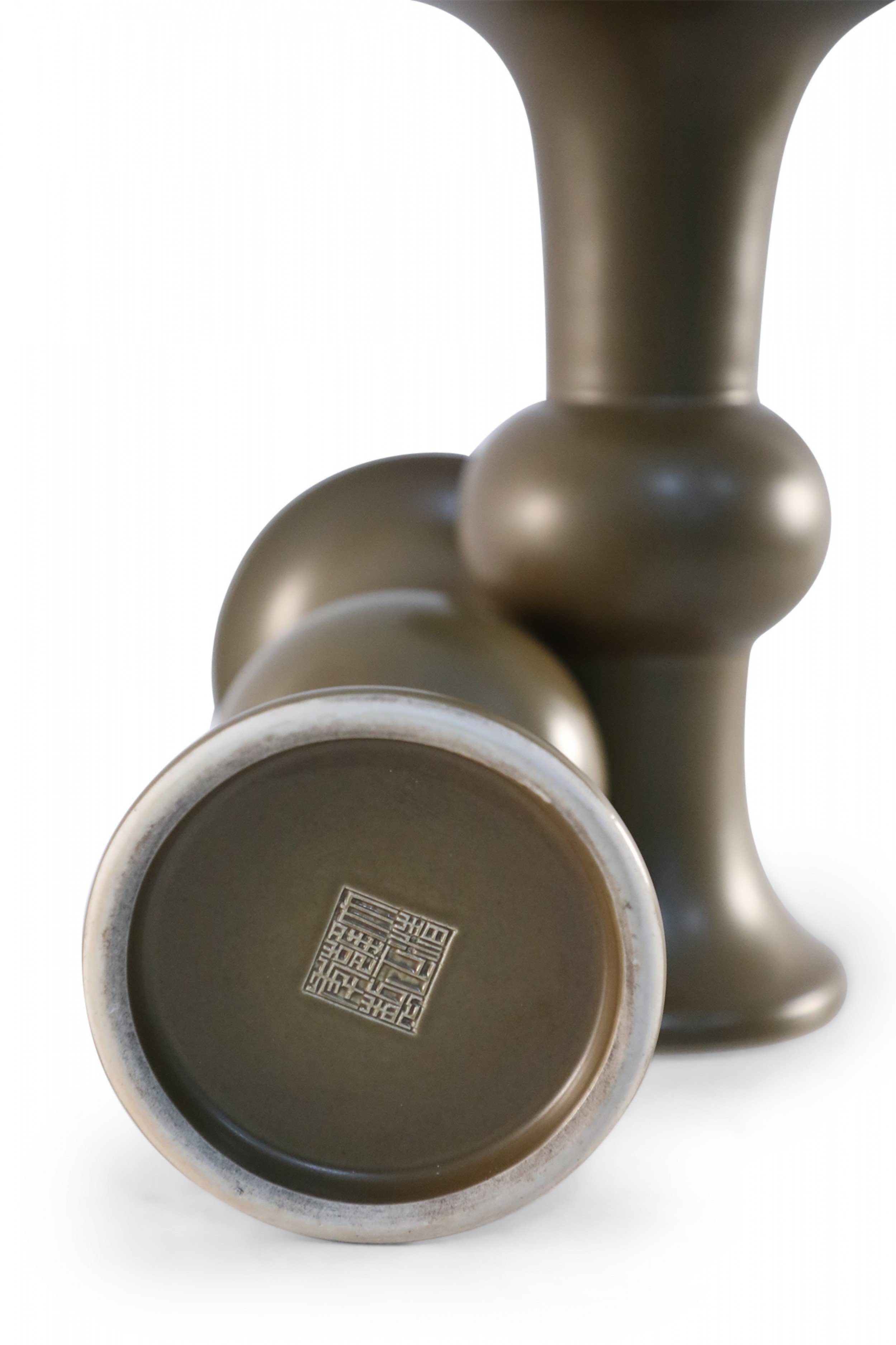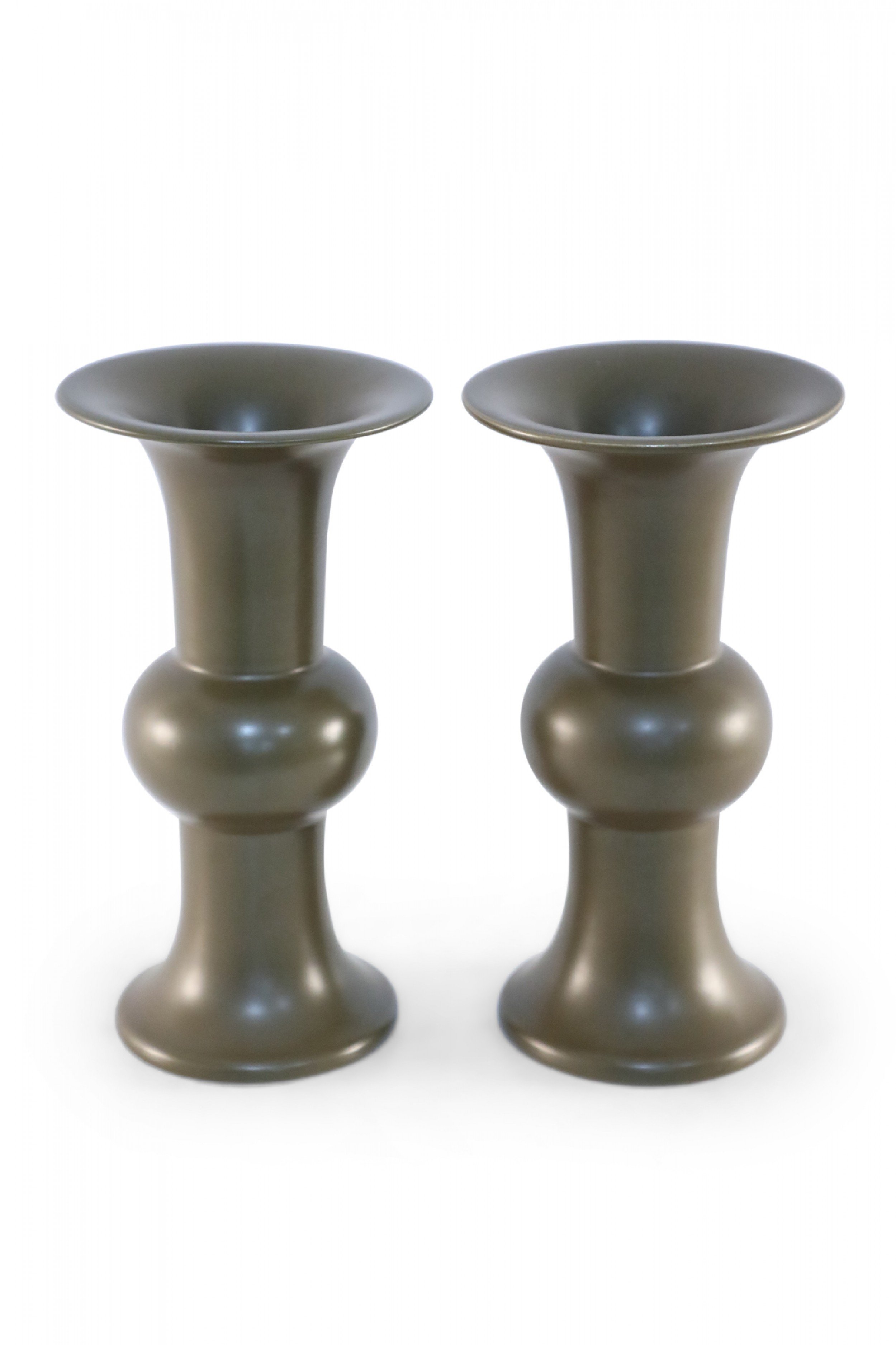 PAIR of Antique Chinese (late 19th Century) ceramic vases with a deep green teadust glaze and beaker-shaped forms (mark on bottom, see photos) (PRICED AS PAIR).