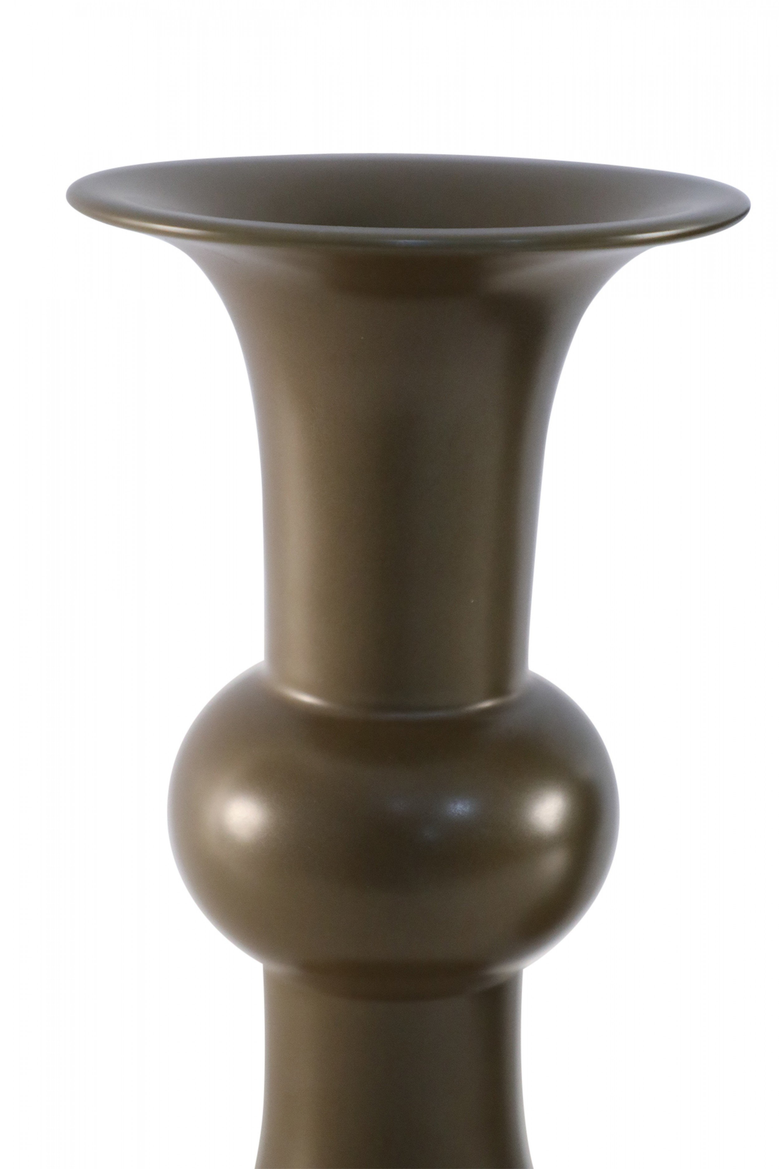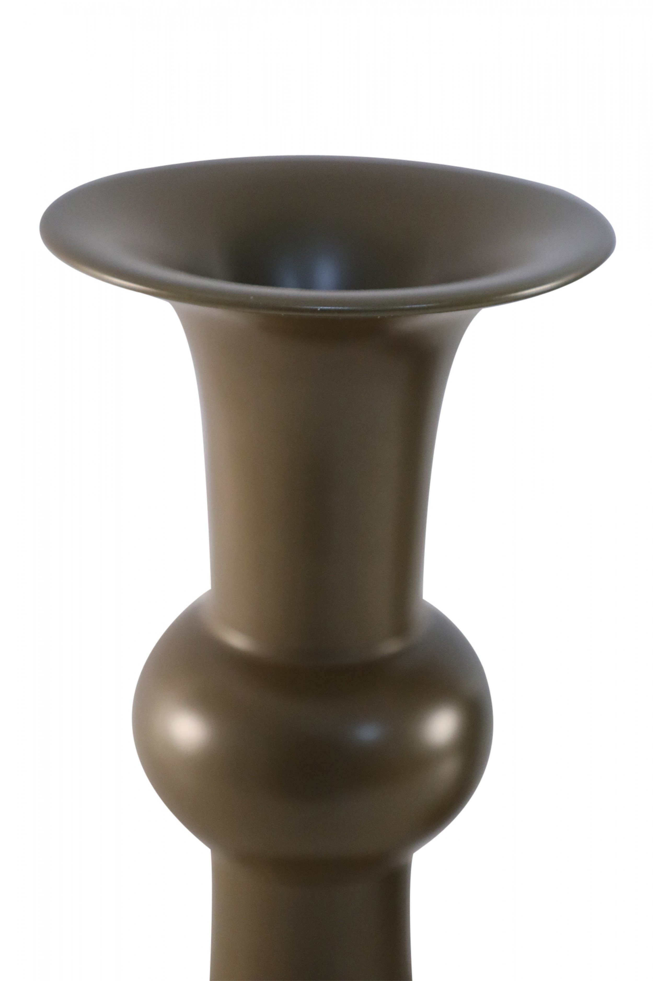 PAIR of Antique Chinese (late 19th Century) ceramic vases with a deep green teadust glaze and beaker-shaped forms (mark on bottom, see photos) (PRICED AS PAIR)..