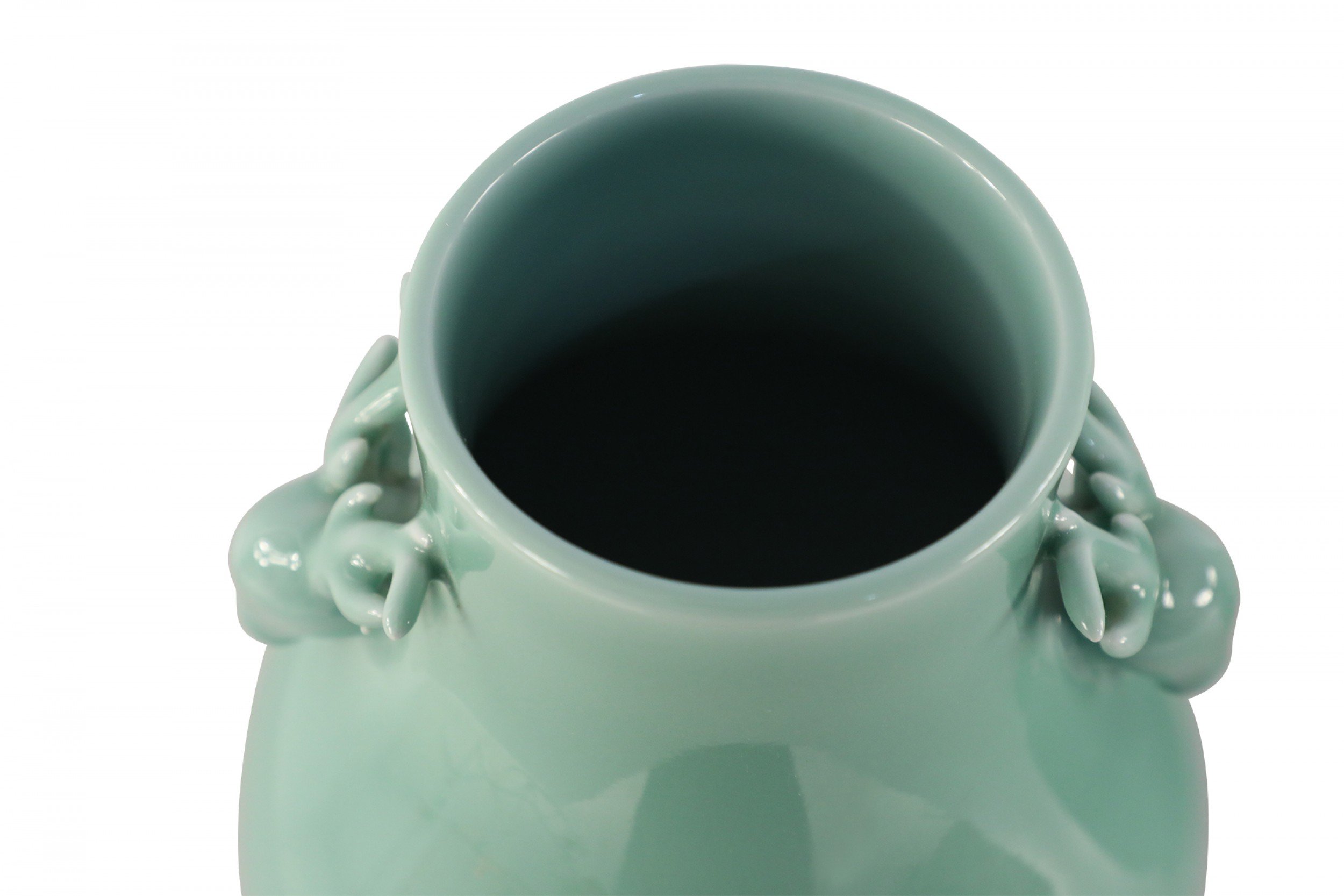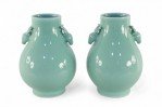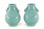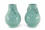 PAIR of Chinese Qing Dynasty Qianlong Period-style (early 20th Century) pear-shaped porcelain vases in celadon with antlered animal ornamentation on each side (mark on bottom) (PRICED AS PAIR)..