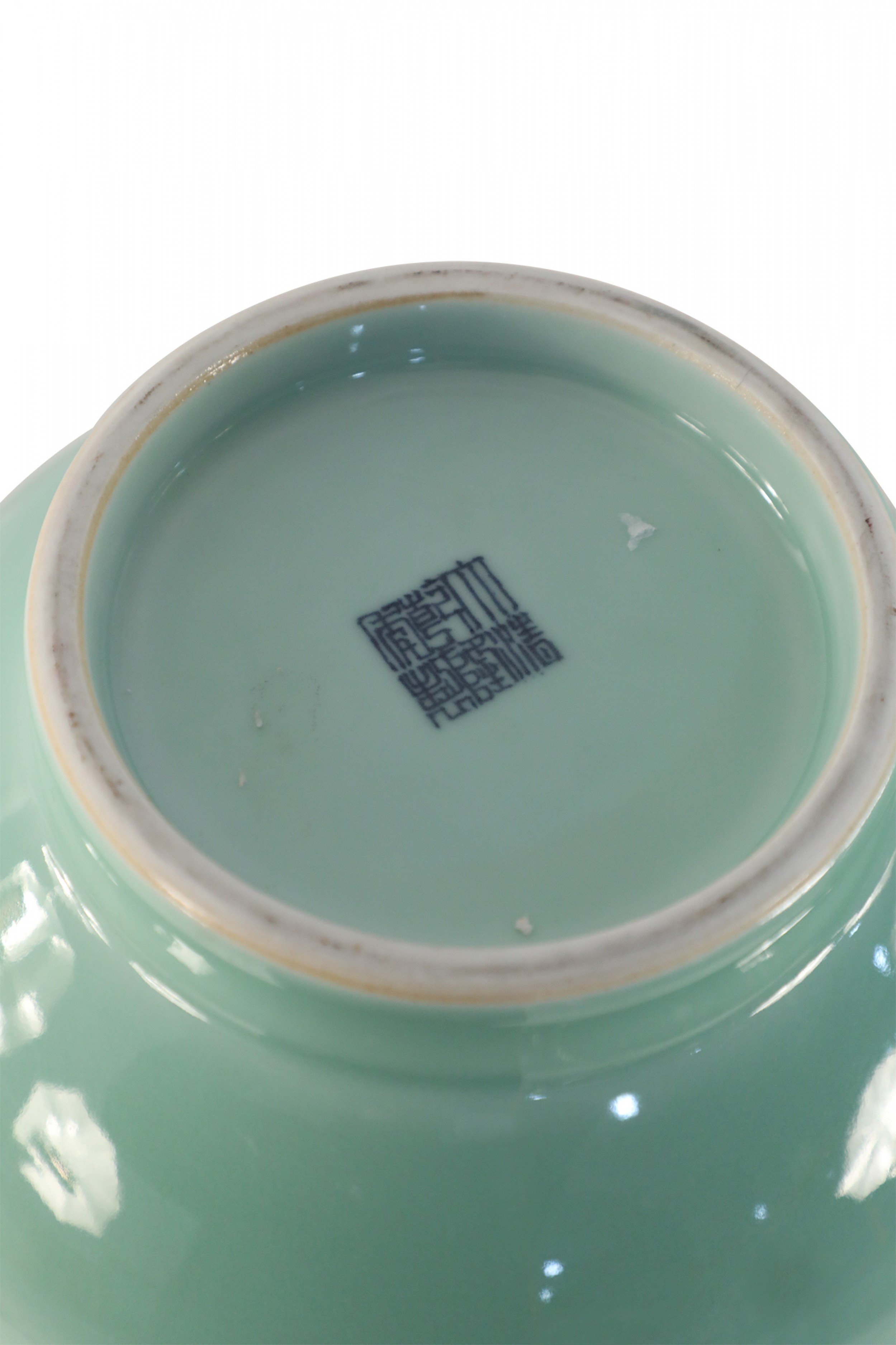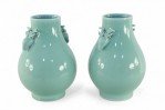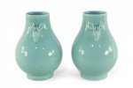 Pair of Chinese Qing Dynasty Style Celadon Pear-Shape Porcelain Vases