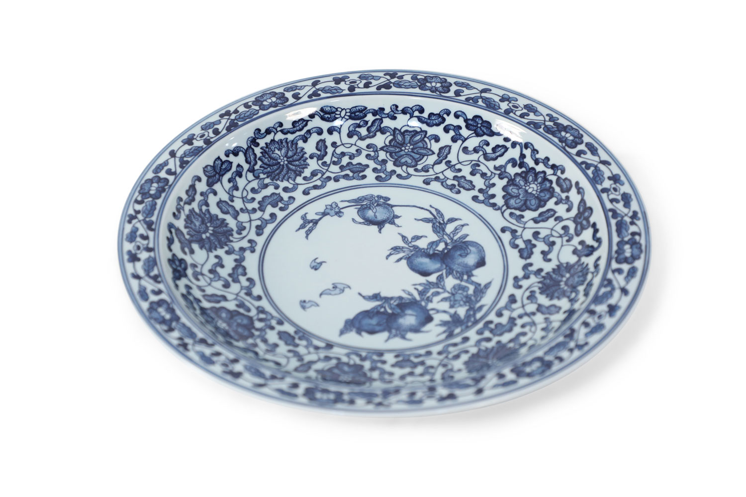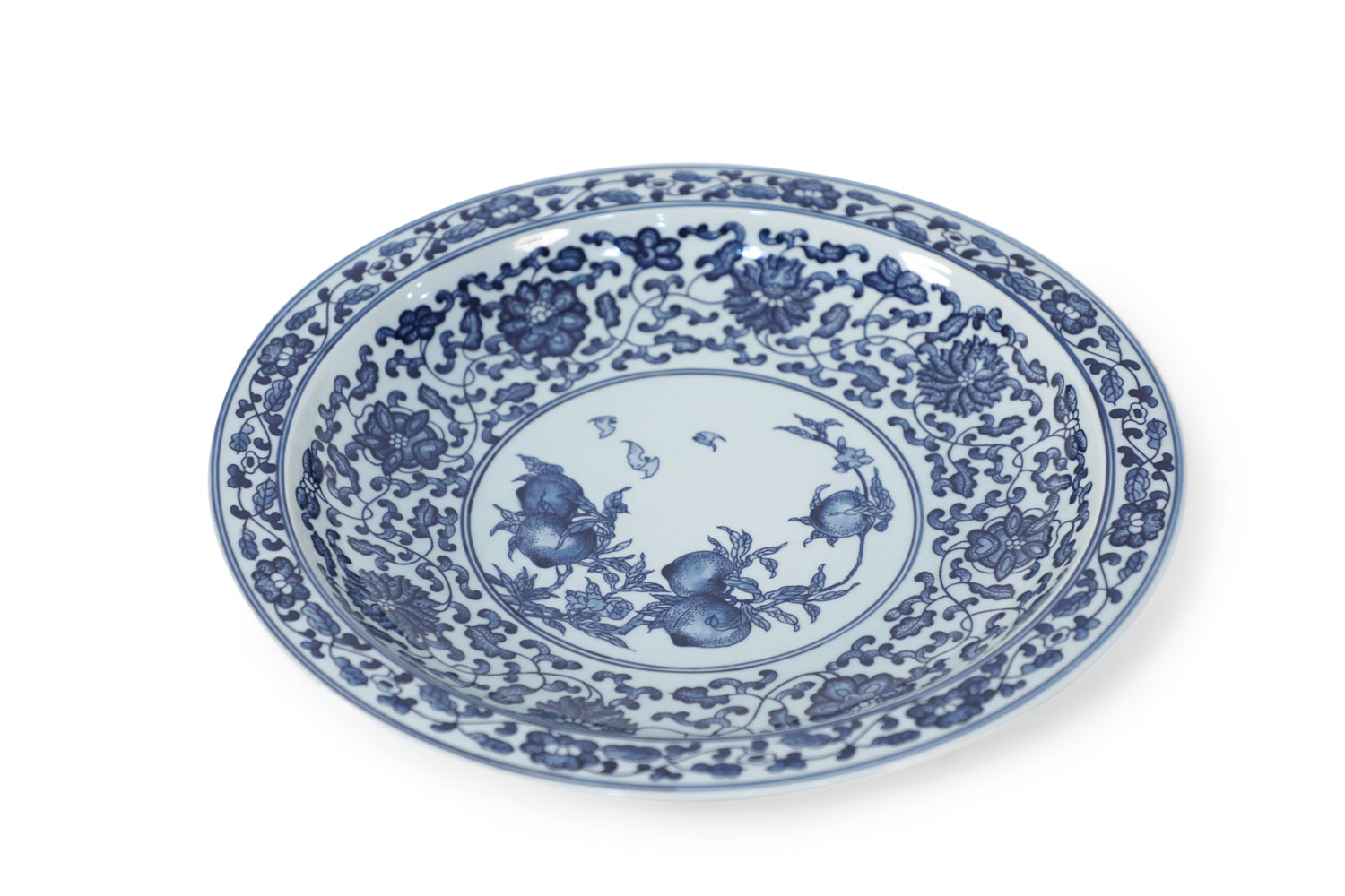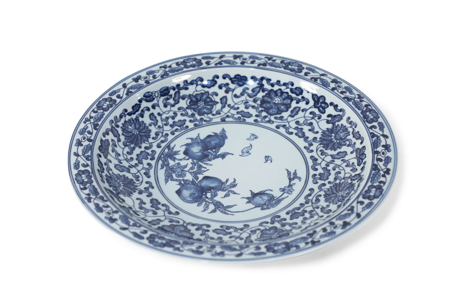Pair of Chinese White and Blue Peaches Decorative Plates