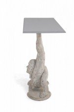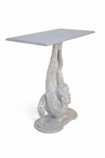 Pair of Chinese Wooden White Painted Contortionist Console Tables
