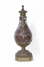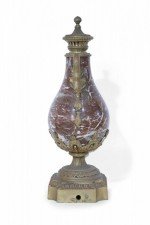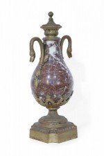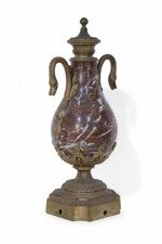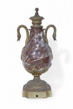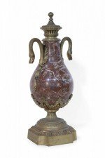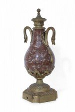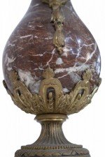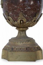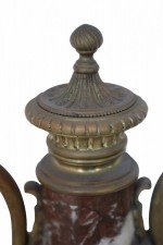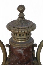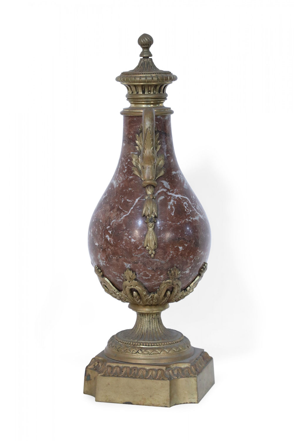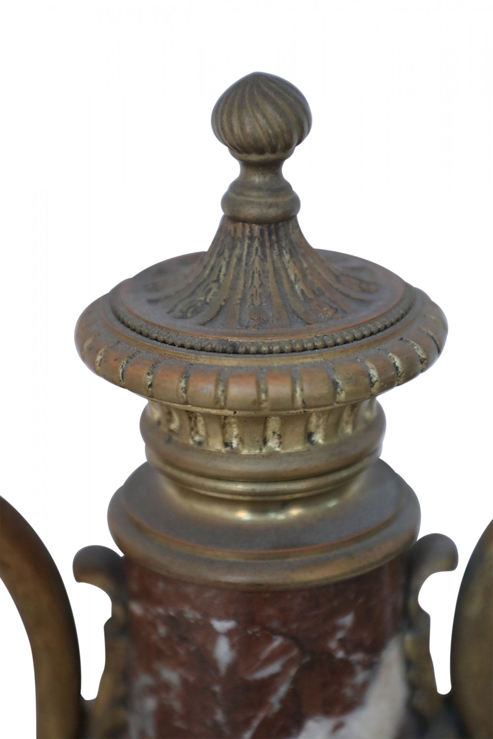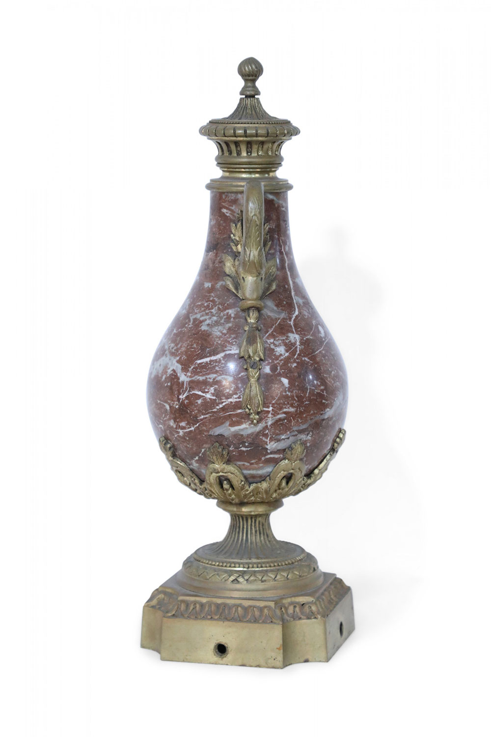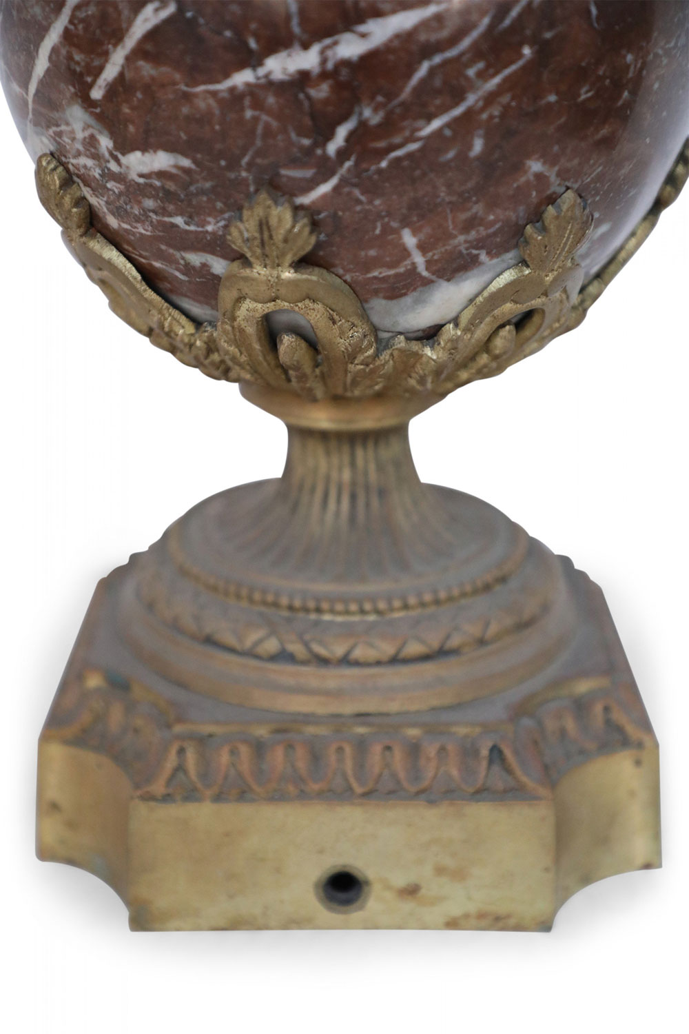 Pair of French Neoclassical Burgundy Marble and Bronze Decorative Urns
