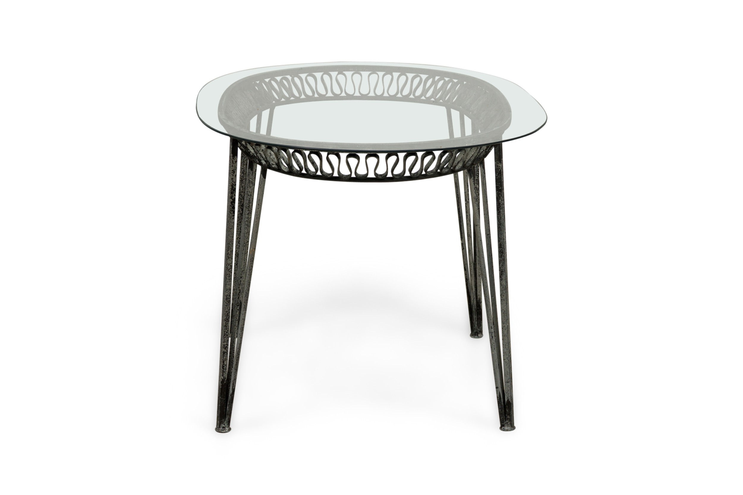 John Salterini (1900-1988) was a prominent American furniture and decorative arts designer. Born in Italy in 1900, Salterini immigrated to the United States at a young age and settled in New York City. Salterini's interest in art and design was evident from an early age, and he pursued formal training in the field. He attended the Pratt Institute in Brooklyn, where he honed his skills in metalworking and sculpture. This foundation would later prove instrumental in his career as a furniture designer. In the 1920s, Salterini established his own design studio in New York City, where he began creating unique and innovative furniture pieces. He drew inspiration from both traditional and modern design styles, blending elements of Art Nouveau, Art Deco, and Mid-Century Modernism. One of Salterini's most notable contributions to the world of design was his pioneering work in wrought iron furniture. He revolutionized the use of this material by creating intricate and ornate designs that were both functional and visually striking. His wrought iron furniture pieces became highly sought after, and their popularity quickly spread throughout the United States. Salterini's designs were characterized by their elegant curves, intricate detailing, and superb craftsmanship. His furniture pieces often featured delicate scrollwork, floral motifs, and graceful lines, showcasing his mastery of the medium. He also experimented with different finishes and colors, offering a wide range of options to suit various interior design styles. Throughout his career, Salterini collaborated with renowned architects and designers, further cementing his reputation as a leading figure in the field. His creations could be found in prestigious locations such as luxury hotels, upscale residences, and public spaces. Despite the changing trends in design, Salterini's work remained timeless and continues to be highly regarded today. His furniture pieces are considered collector's items and can be found in museums and private collections worldwide. John Salterini passed away in 1988, leaving behind a legacy of exceptional design and craftsmanship. His contributions to the world of furniture and decorative arts continue to inspire and influence designers to this day.