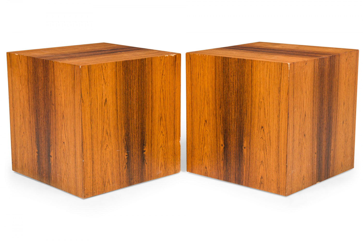 PAIR of American Mid-Century cube-shaped end / side tables with a rosewood veneer. (MILO BAUGHMAN FOR THAYER COGGIN)(PRICED AS PAIR).