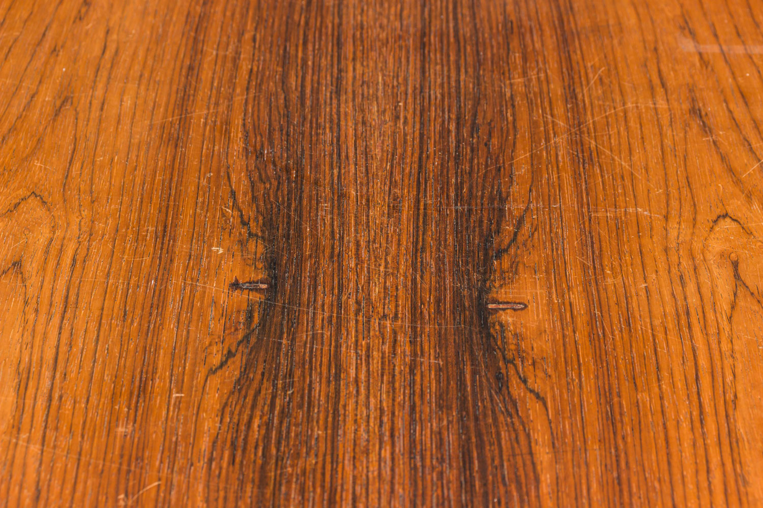 Style: Mid-Century Materials & Techniques: Rosewood, veneer, wood Category: Tables Good; Wear consistent with age and use