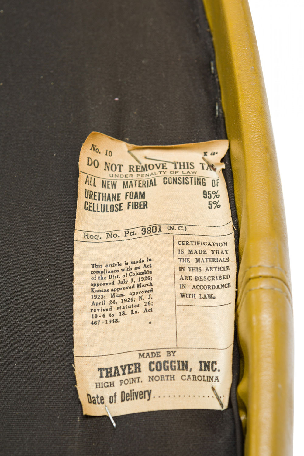 Style: Mid-Century Materials & Techniques: Leather, upholstered Category: Seating Good; Wear consistent with age and use
