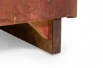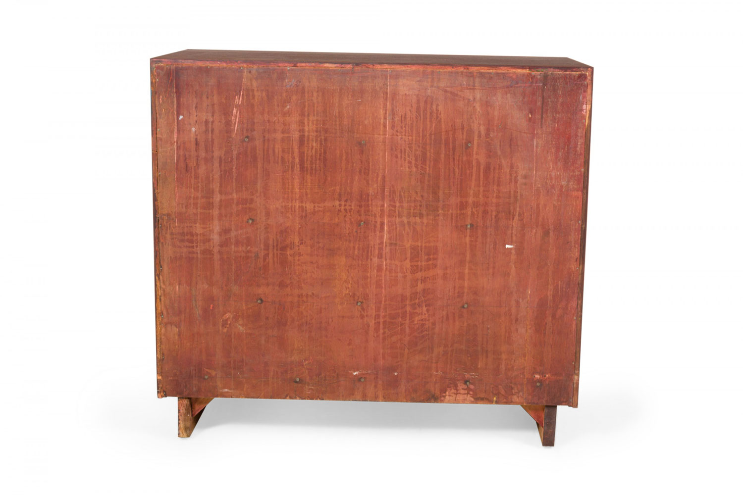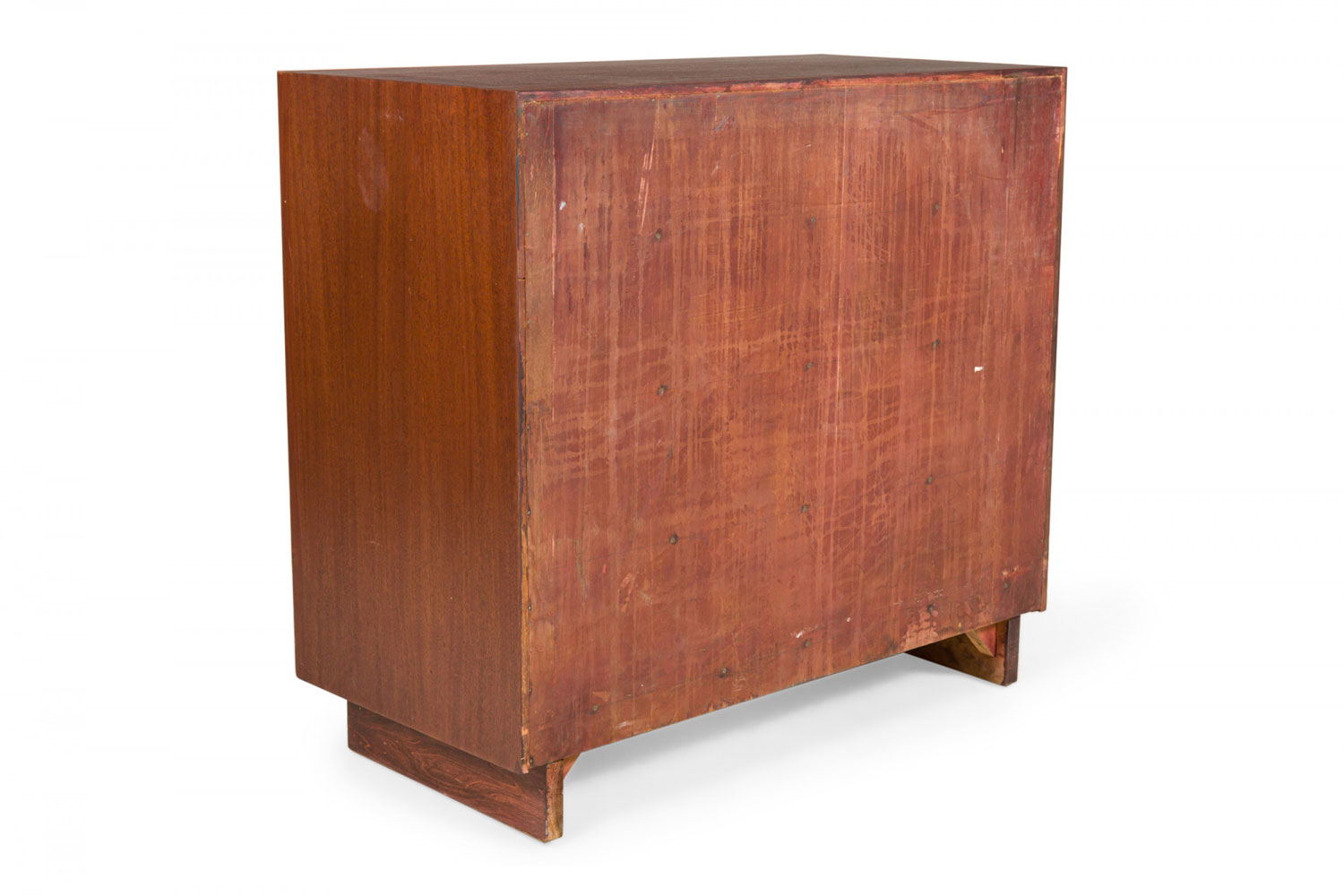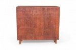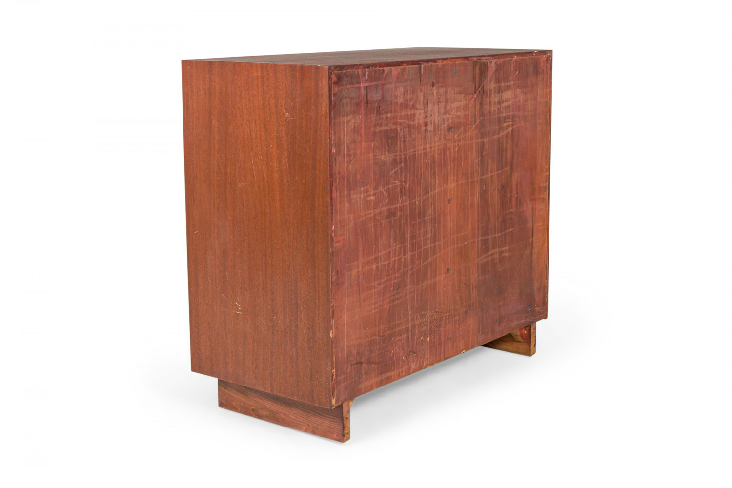 PAIR of Mid-Century ribbon mahogany four-drawer commodes with disk-shaped lucite drawer pulls. (MODERN AGE)(PRICED AS PAIR).