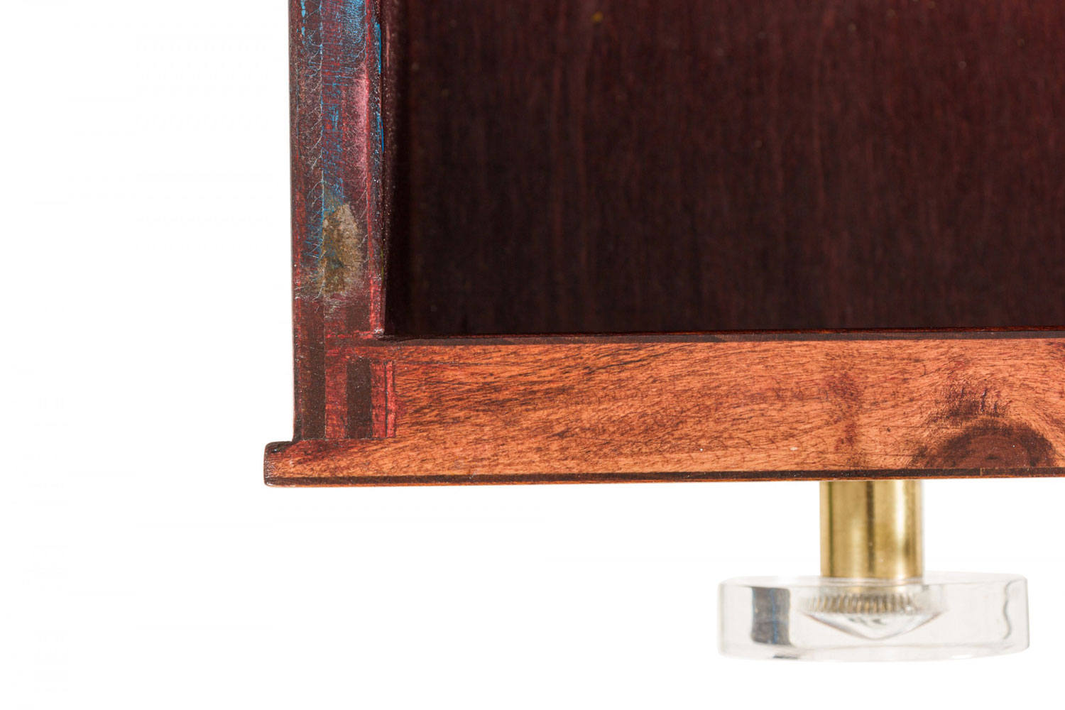 Style: Mid-Century Materials & Techniques: Lucite, wood Category: Tables, Cabinets & Case Goods, Dining Room Good; Wear consistent with age and use