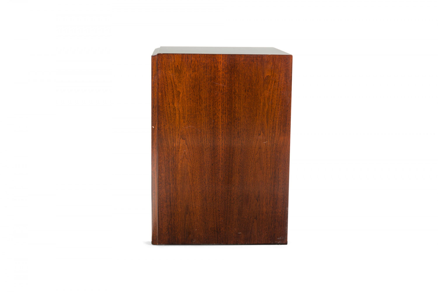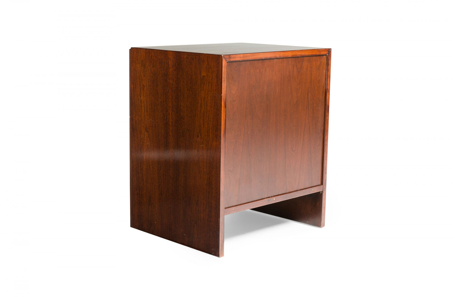 PAIR of American Mid-Century walnut bedside tables / commodes with an open lower compartment and an upper single drawer. (T.H. ROBSJOHN-GIBBINGS FOR WIDDICOMB FURNITURE CO.)(PRICED AS PAIR).