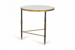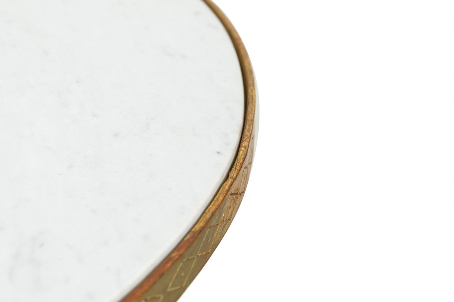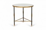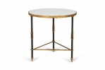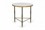 Pair of Palladio Mid-Century White Marble and Black and Gilt Iron Circular End / Side Table