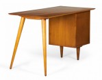 Style: Mid-Century Materials & Techniques: Maple, wood Category: Tables, Office/Library Condition: Refinished.