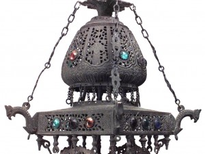 Style: Middle Eastern Materials & Techniques: Glass, brass, iron, iron / wrought iron Category: Lighting