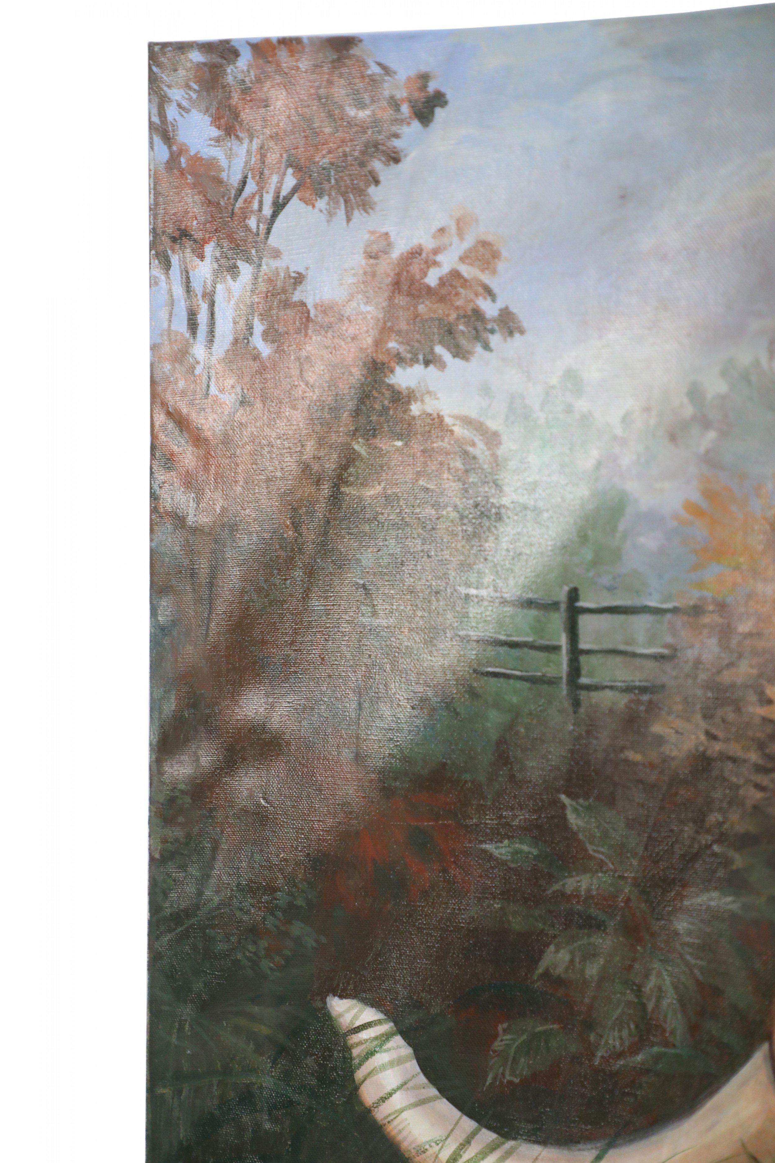 Style: English Materials & Techniques: Canvas Category: Cleared Art Condition: Canvas warping in upper left corner.