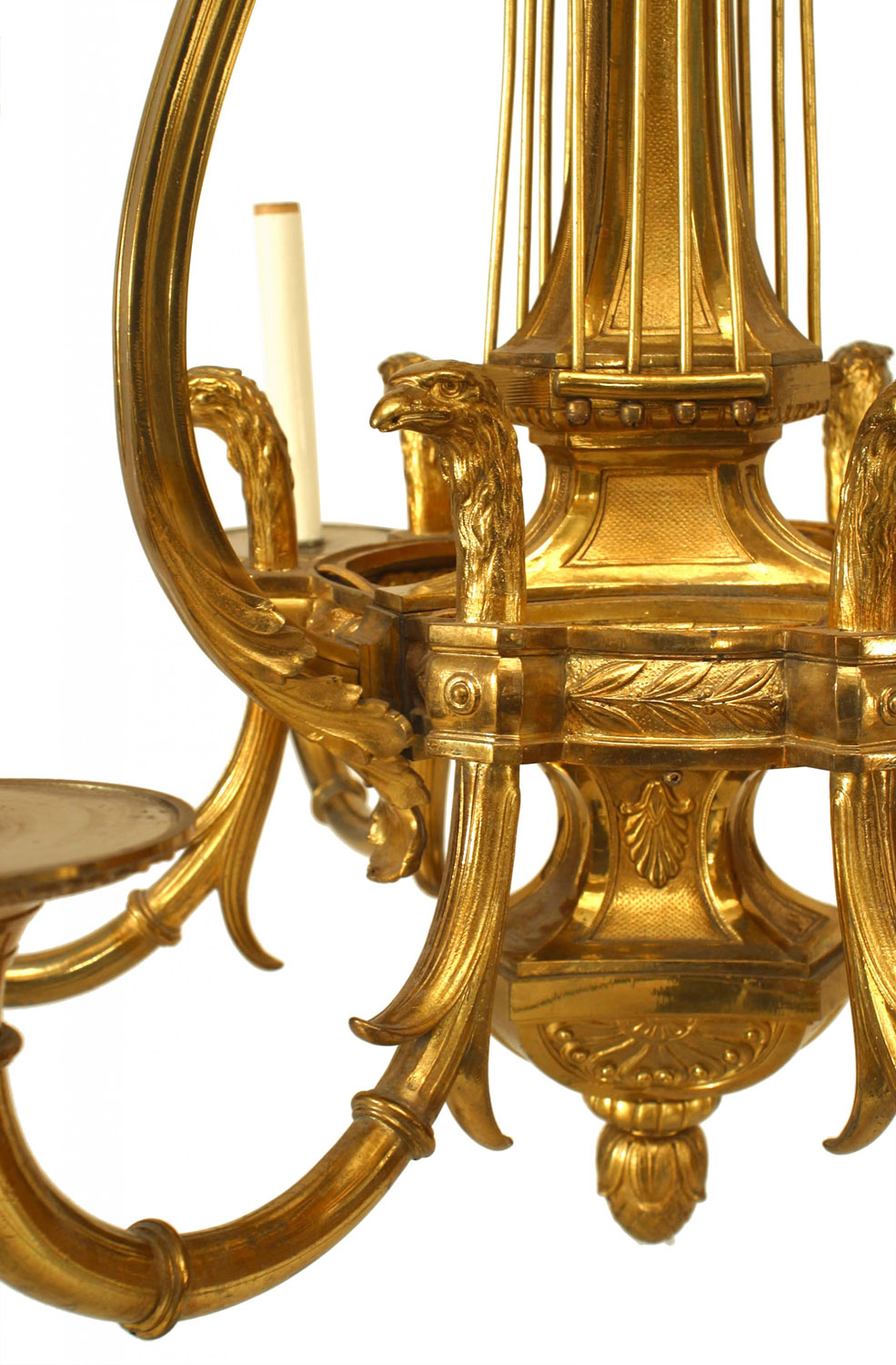 Russian Neoclassic Style Ormolu Lyre and Eagle Chandelier