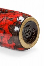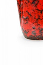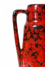 West German Mid-Century ceramic pitcher with a fat lava-style red and black glaze. (SCHEURICH KERAMIK, mark on bottom, W. GERMANY 275-20).