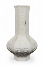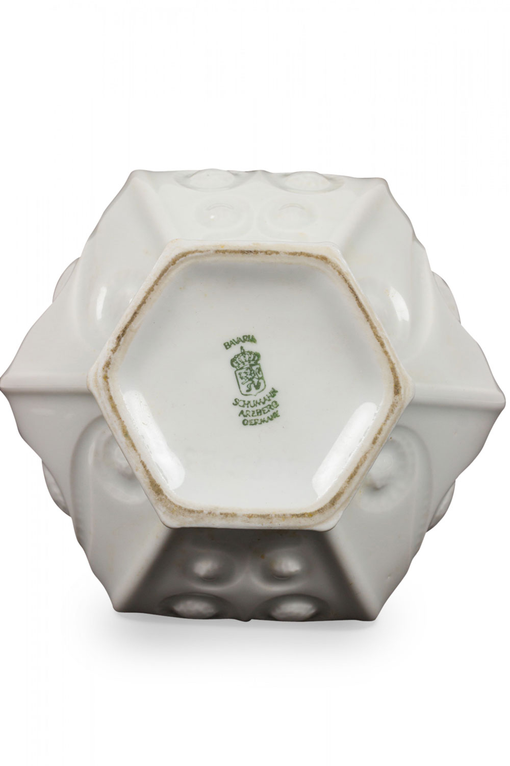 Bavarian German Mid-Century white porcelain vase with a square vase and a bulbous bottom extending to a narrow square neck with an incised spiral pattern. (mark on bottom, BAVARIA SCHUMAN ARZBERG GERMANY).
