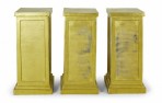 3 Contemporary square metal pedestals with a gold painted finish, a stepped base, and inset rectangular sides. (PRICED EACH).