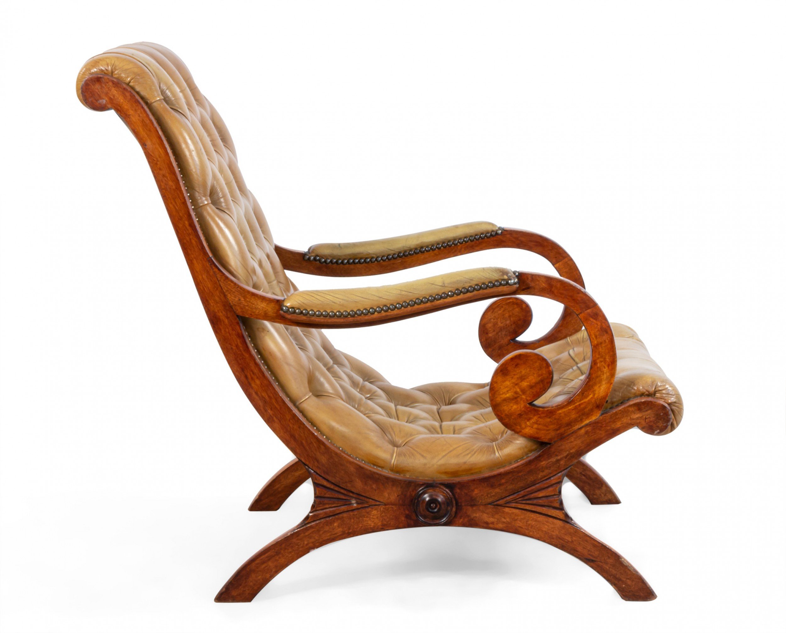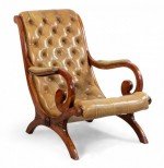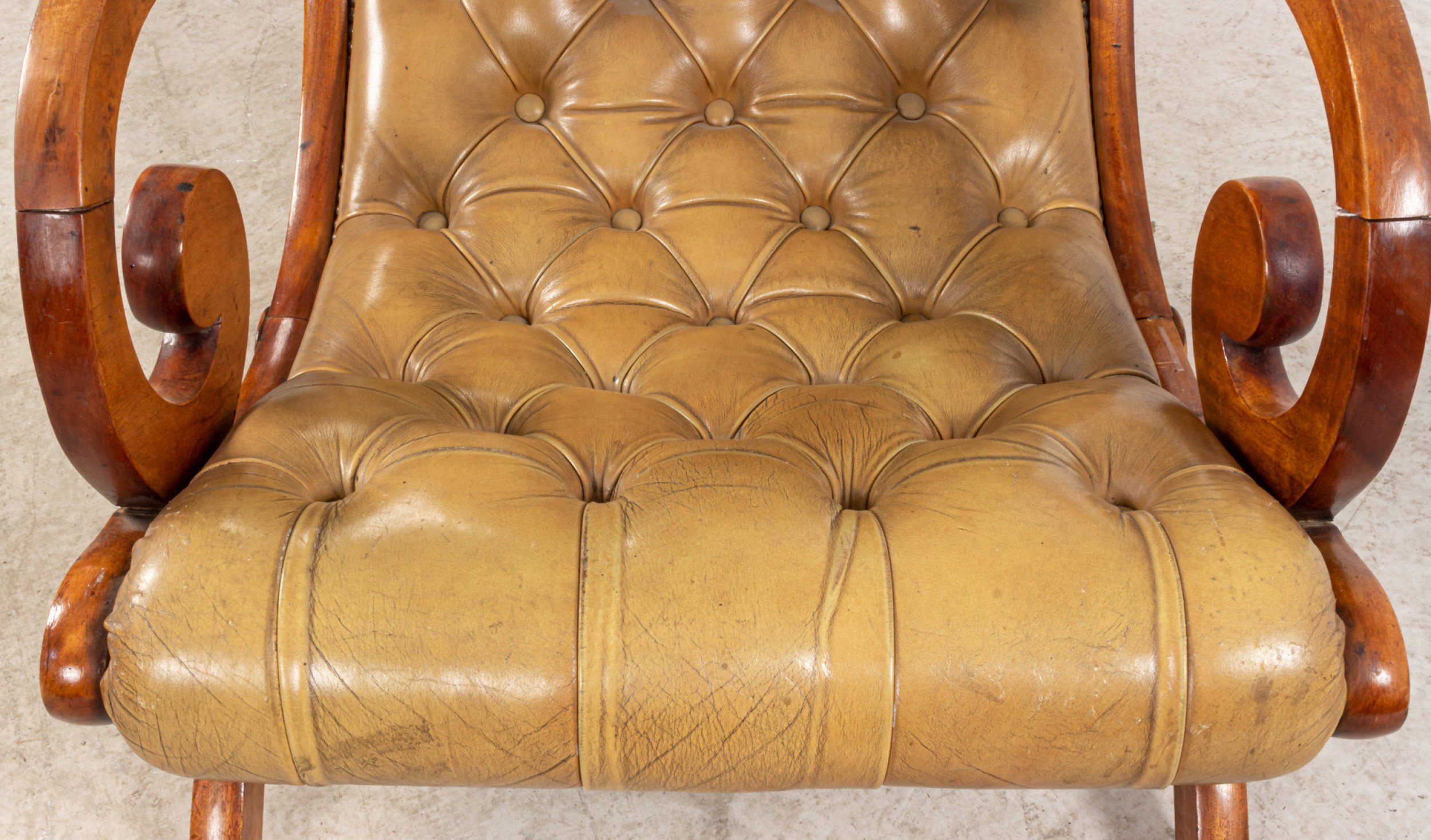 Style: French Materials & Techniques: Wood, mahogany, leather, button, tufted Category: Seating