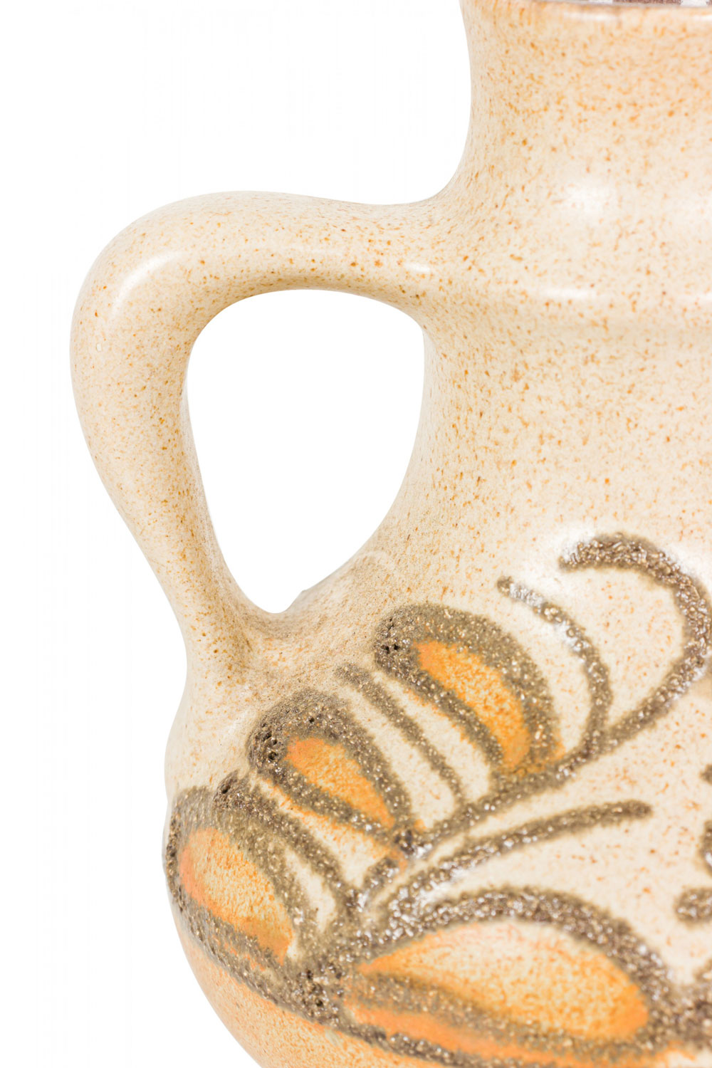 Strehla Keramik East German Mid-Century Beige and Brown Leaf Patterned Ceramic Jug