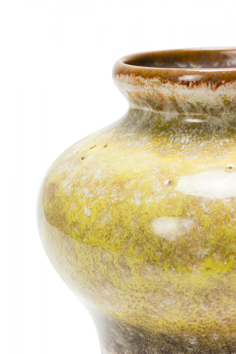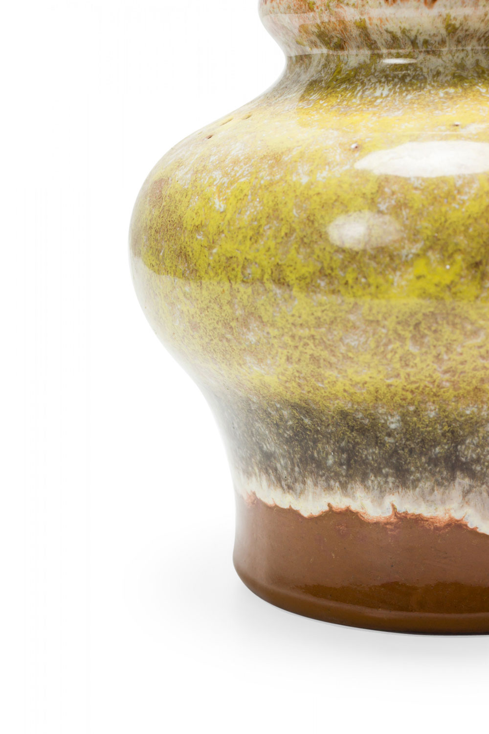 Strehla Keramik East German Mid-Century Bulbous Form Yellow and Brown Glazed Ceramic Vase