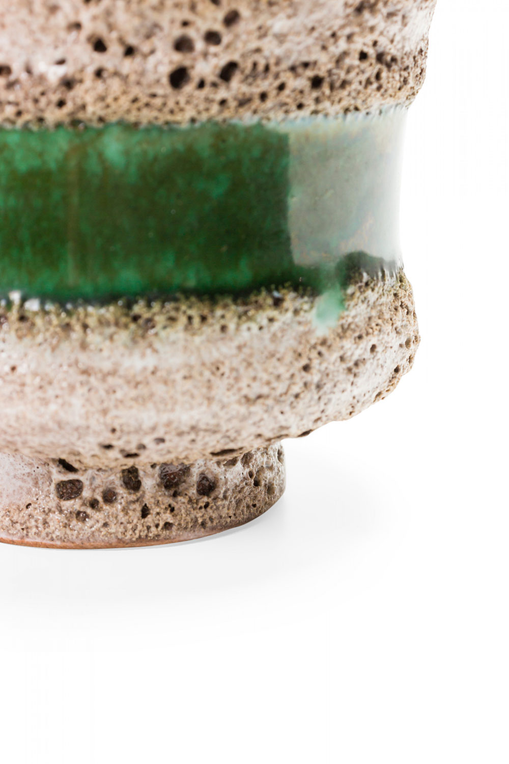 Strehla Keramik East German Mid-Century Fat Lava Pitted Beige and Green Stripe Glazed Ceramic Pot