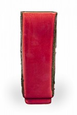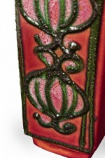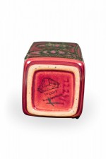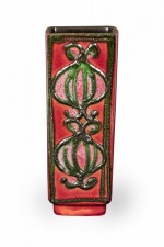 Strehla Keramik East German Mid-Century Raised Green Design Burgundy Glazed Square Ceramic Vase