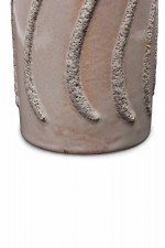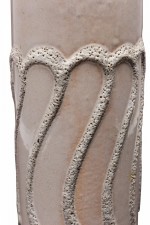East German Mid-Century cylindrical ceramic vase with a raised pitted gray wave design against a beige glazed ground. (STREHA KERAMIK, mark on bottom, STREHLA GDR).