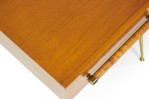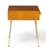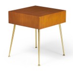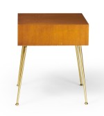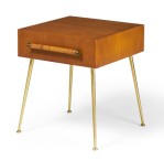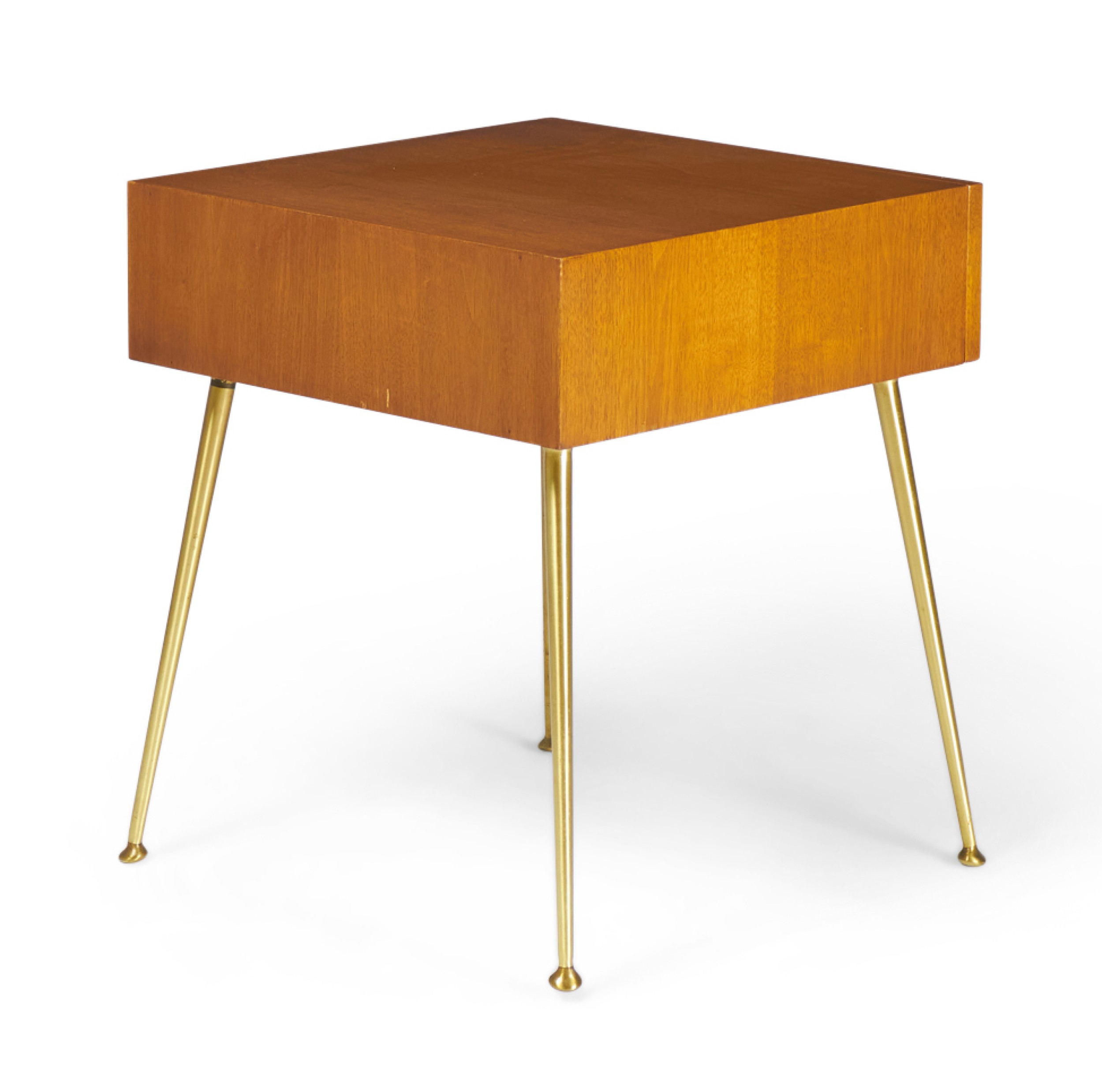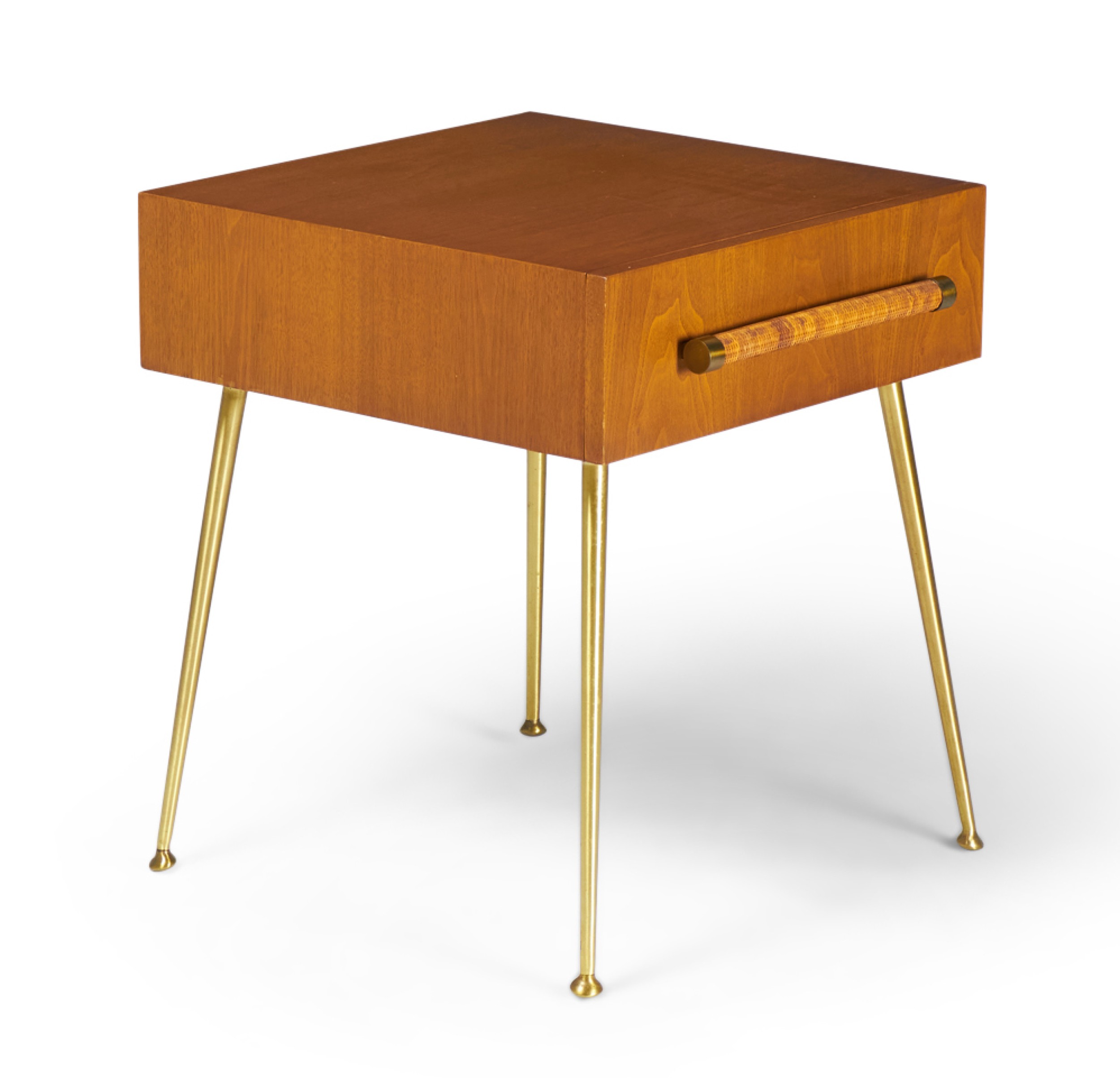 Style: Mid-Century Materials & Techniques: Brass, metal, rattan, walnut, wood Category: Tables, Bedroom Good; Wear consistent with age and use