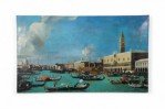 Italian Venetian-Style (20th Century) unframed canvas oil painting of a bright, aqua canal crowded with gondolas under passage in front of Doge's Palace with St Mark's Campanile just behind it, and the domes of the Punta della Dogana visible in the distance in the lower left corner..